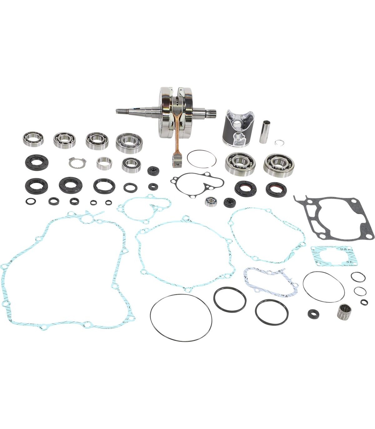 Complete Engine Rebuild Kit for 2-StrokeConvenient one-stop shop in a box; nearly all components required for a complete and professional rebuildVertex piston kit (standard compression piston, rings, pin and clips)Hot Rods heavy-duty crank (stock stroke with wrist pin bearing)Hot Rods main bearing/seal kitHot Rods transmission bearing kit (includes transmission bearings, output shaft collar and sprocket lock washer)Hot Rods counter balancer bearing kitHot Rods water pump bearing and seal kitVertex complete gaskets kit, including seals and O-ring kit (covers top and bottom)Kit Includes: