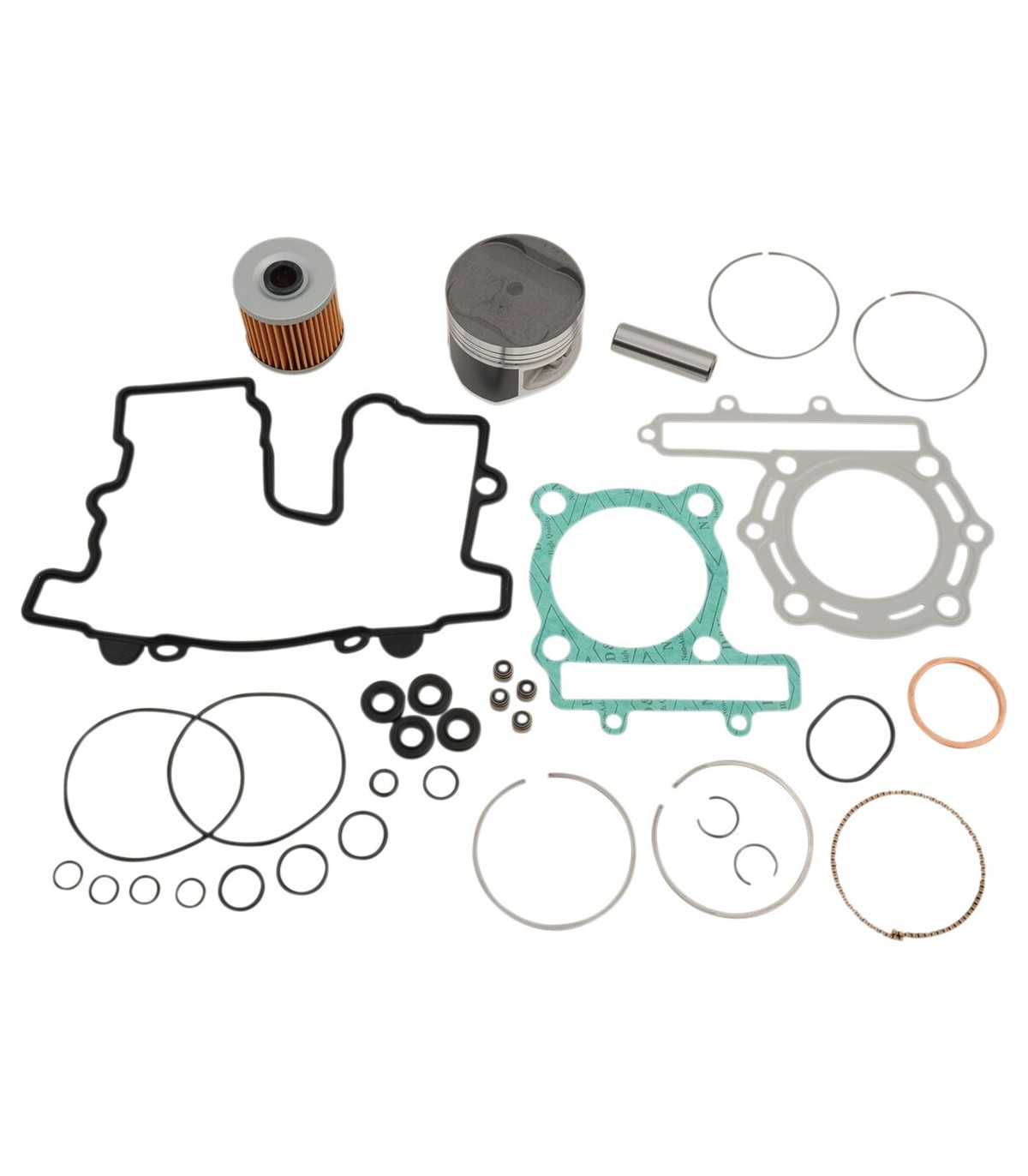 Kit de reconditionnement haut-moteurKits piston de qualité supérieureInclut des pistons, des segments, des circlips, des clips, des roulements à aiguilles, des joints de culasse et d’embase, des joints d’admission et d’échappement et un filtre à huile pour modèles à 4 temps