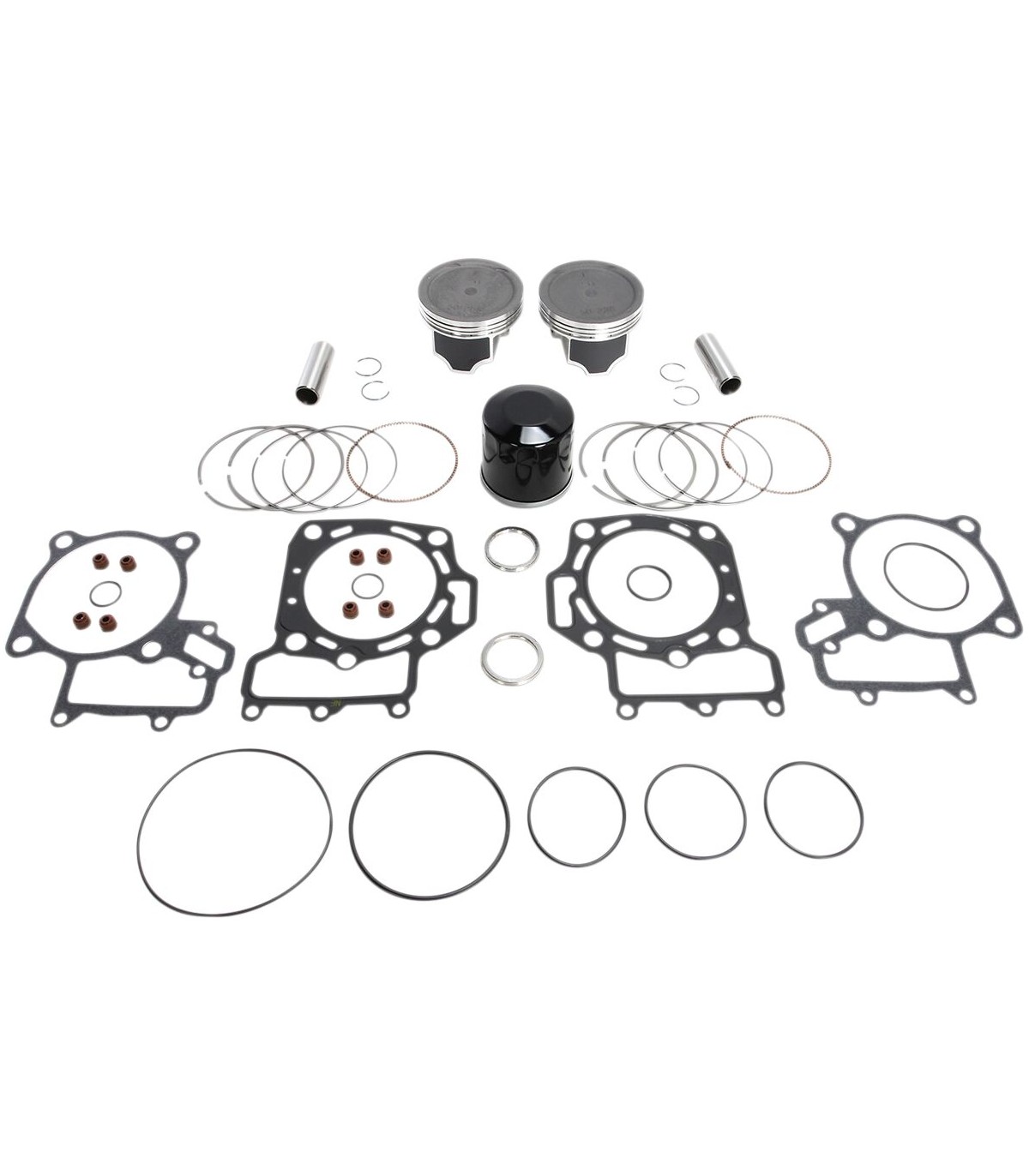 Kit de reconditionnement haut-moteurKits piston de qualité supérieureInclut des pistons, des segments, des circlips, des clips, des roulements à aiguilles, des joints de culasse et d’embase, des joints d’admission et d’échappement et un filtre à huile pour modèles à 4 temps