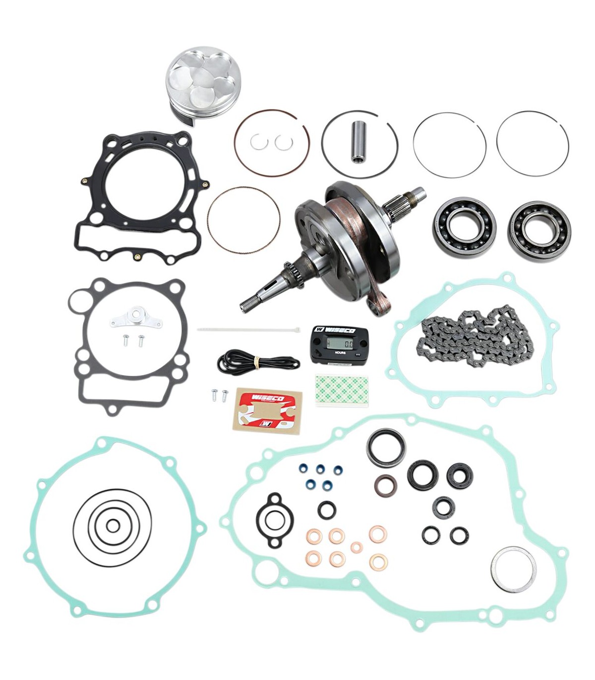 Engine Rebuild Kit - Garage Buddy - 4-StrokeKit includes a premium forged piston kit with stock compression ratio and a high-quality cam chainTop and bottom end components are included for a complete engine rebuildCrankshaft and rod assembly designed and inspected to assure durabilityMain bearings, seals, gaskets, a Wiseco hour meter and bracket are also included in the kitKit Includes: • Crankshaft Assembly • Piston Kit #4952M07700 • Top End Gasket #W5921 • Bottom End Gasket #WB1038 • Main Bearing #B5036 • Cam Chain #CC007 • Hour Meter with Mount #W8063/W8062 • Maxima Assembly Lube