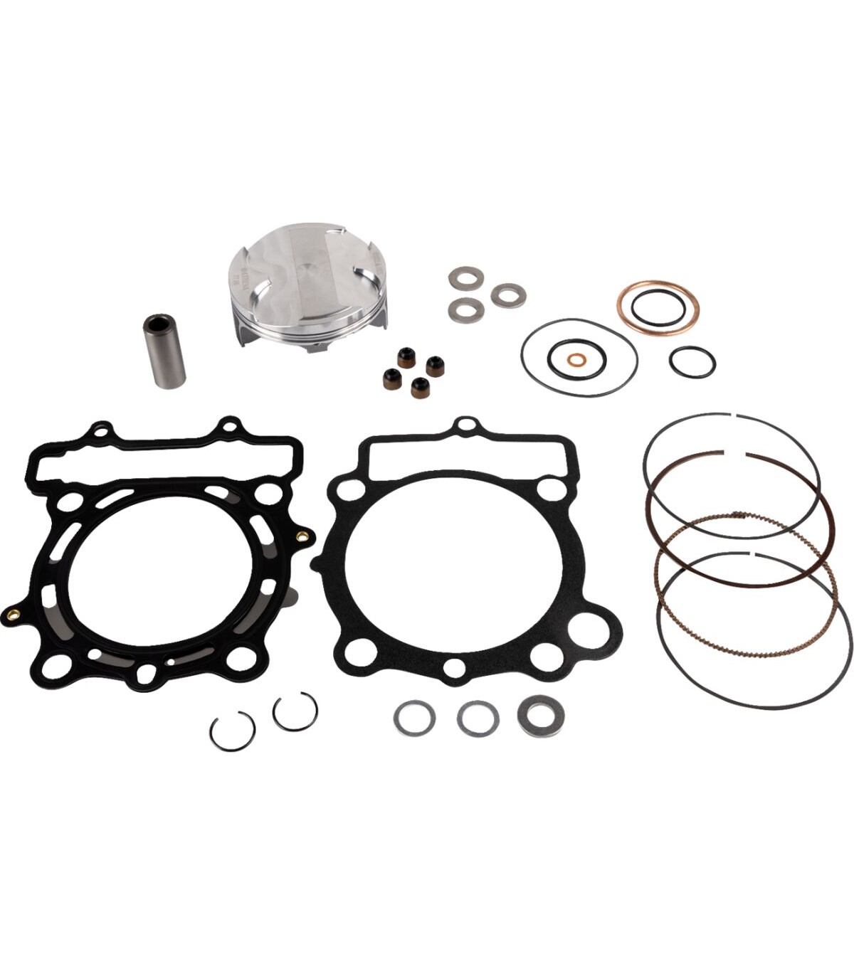 Piston Kit with Gaskets Made of high-performance aluminum alloy with high silicon content that guarantee the same reliability of the OE piston, while at the same time providing greater resistance and excellent performanceThe smooth profile ensures a regular flow and the perfect flame propagationThe piston for 4-stroke Off-Road motorcycles are made by reverse extrusion and produced numerical control (CNC) machinesPiston rings create less friction with the cylinder and therefore a higher performance. The segments included, Made in Japan, have a wear-resistant coatings (PVD or chromium nitride) to increase the retain and the durability