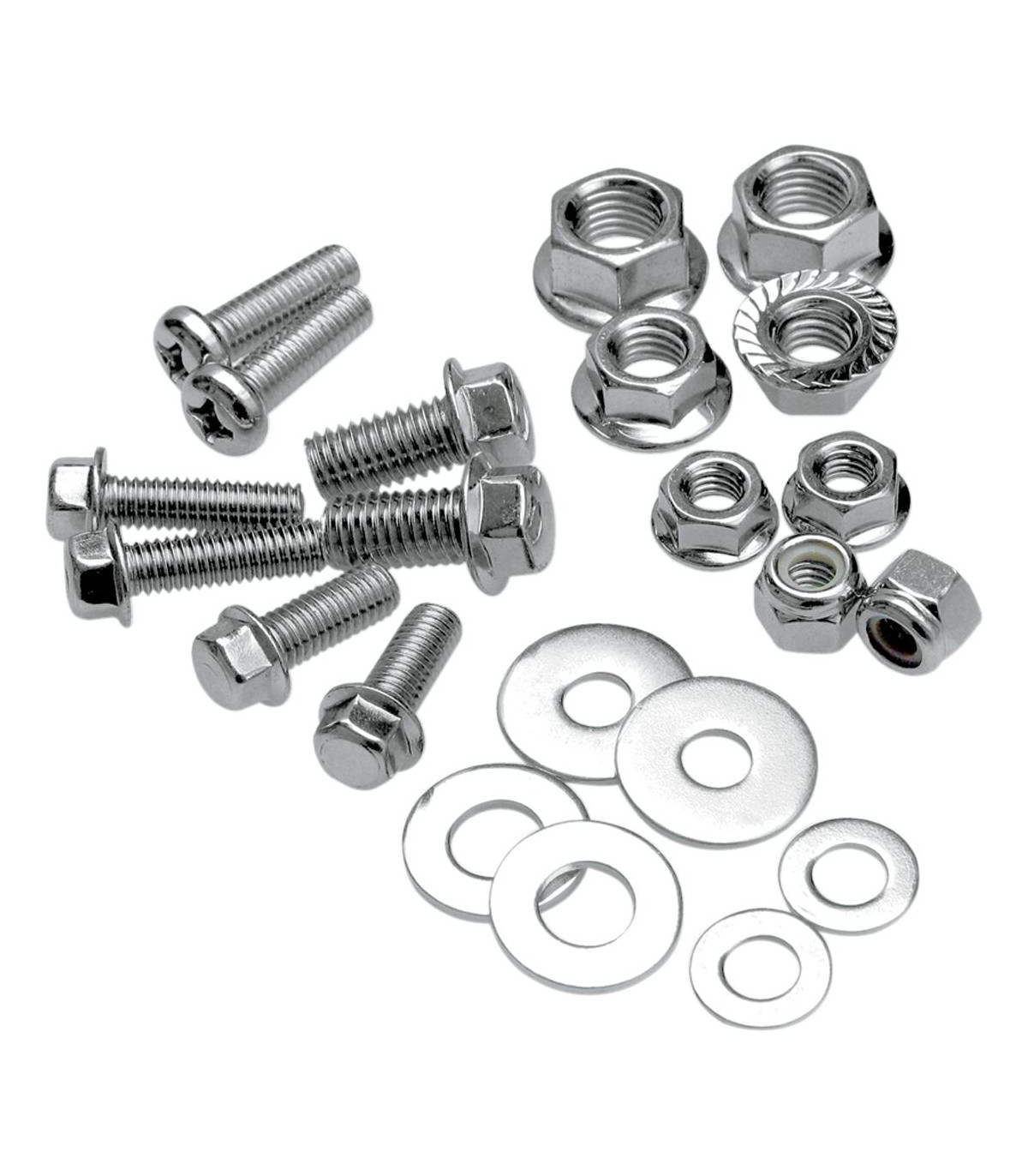 Tool Pack Hardware KitConvenient store display board with 12 individual Mini Hardware Kit bags including; 6 mm, 10 mm, 8 mm, 8x16 flange nuts, 6 mm fender washer, 8 mm flat washer, 6x16 flange bolt, 6 mm lock nut, 6x20 flange bolt, 6x20 pan screw and 6 mm flat washerEach Mini Hardware Kit bag contains 22 of the most commonly needed nuts, bolts and washers for off-road/MX repairsDesigned for modern off-road, MX and dual-sport motorcyclesPerfect size to carry in your tool pack for trail-side repairs