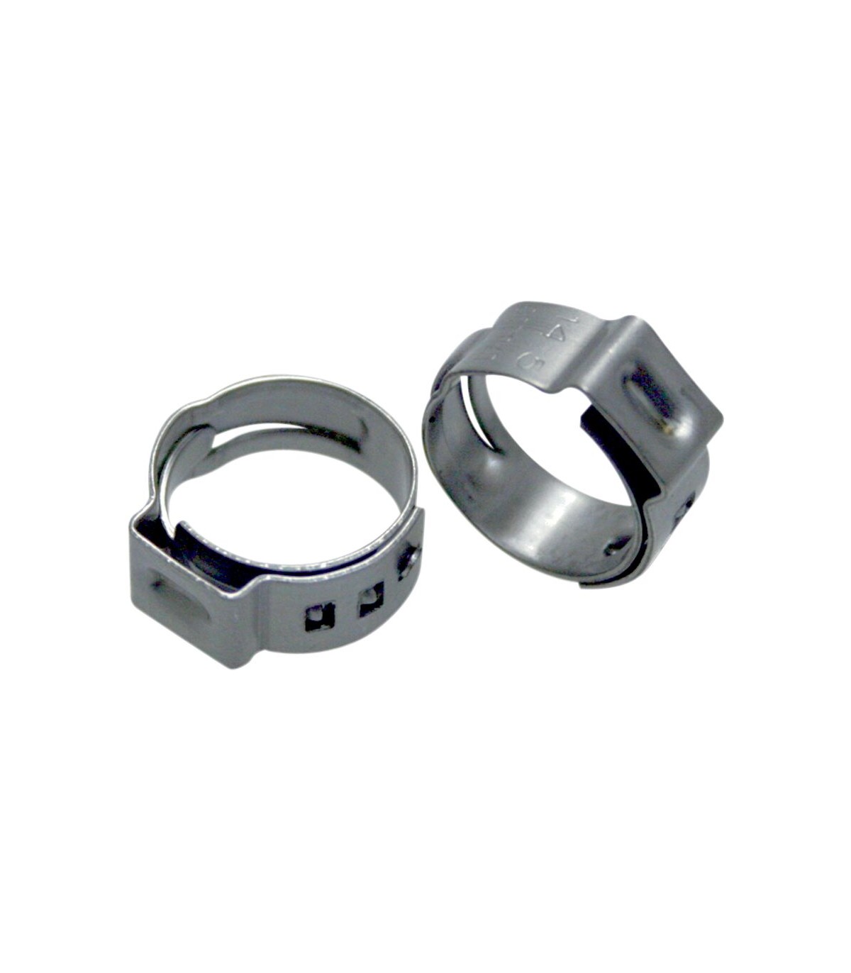 Stepless® Ear ClampsSpecially formed strip edges reduce the risk of damage to the part being clampedLightweight design narrow band provides concentrated seal compressionNarrow 5 mm wide band provides concentrated seal compression360° Stepless® design with no gaps on inner surfaceTampering is visibleLightweight designSide jaw clamp pincher tool part# 3801-0182 sold separately.