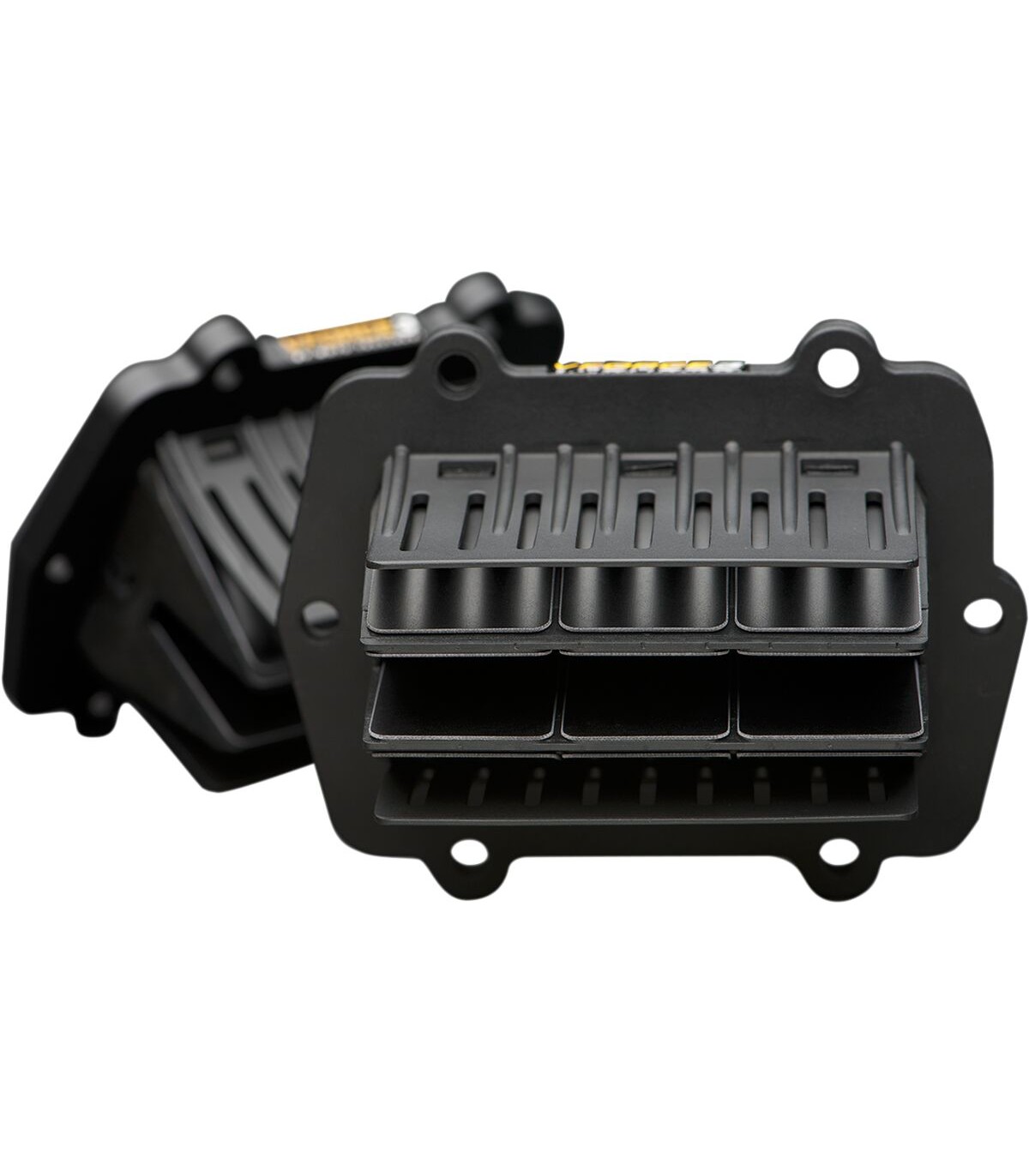 Système de boite à clapets V-Force 3Les cages à emboîter ont des lamelles de clapet symétriques éliminant la nécessité d’avoir des lamelles de rechange intérieures et extérieuresLa forme de l'extrémité de la boîte à clapets accélère le mélange d'air et permet un meilleur flux d'air pour une performance augmentéeLe design innovant élimine la visserie
