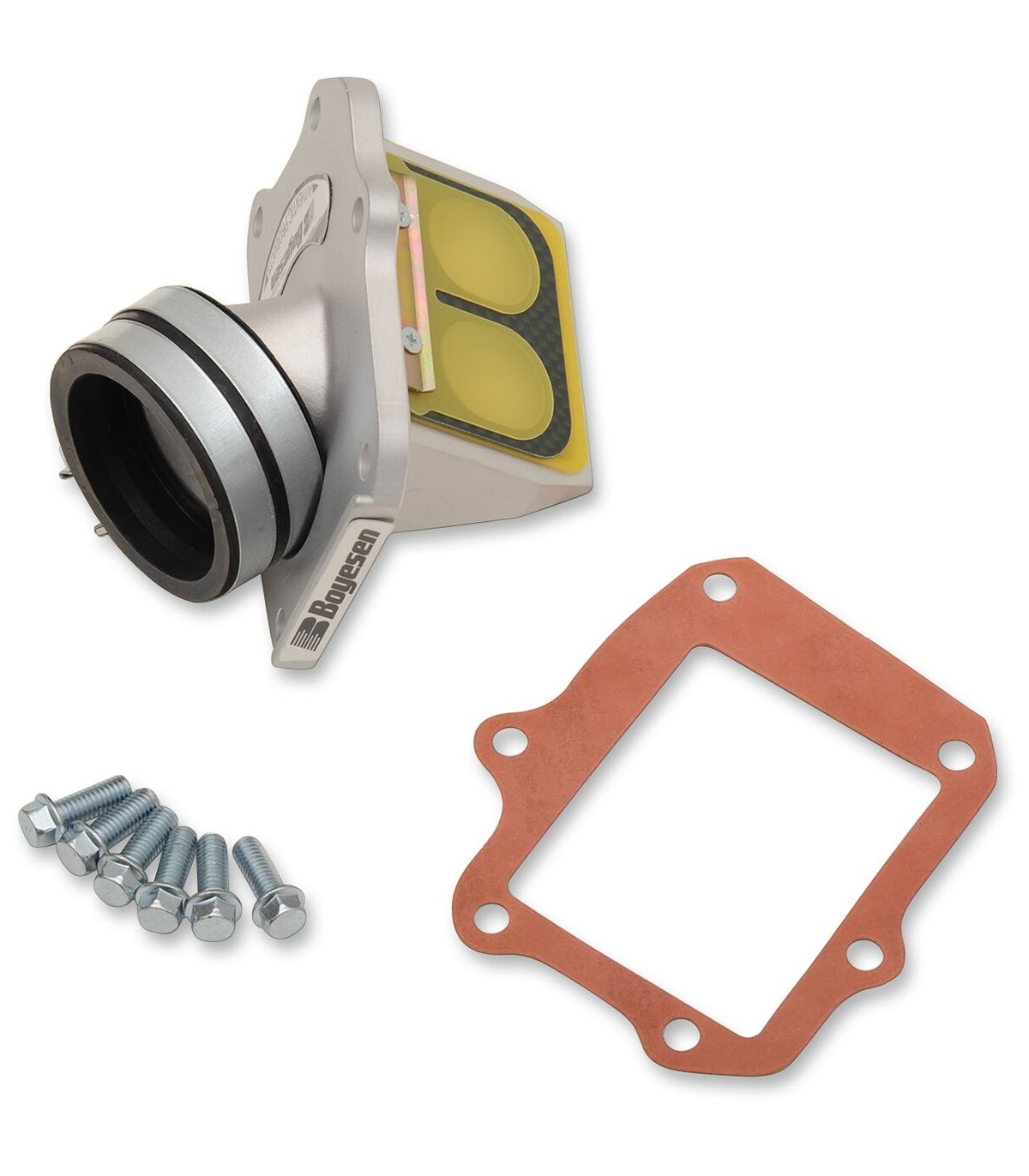Rad Valve Reed Cage AssemblyMaintain flow velocity through the valve and redirect intake charge for more even distribution to intake portsMade of one-piece aluminum castings and bolts in easily; no modifications necessaryProvide quicker, sharper throttle response and more horsepower throughout rpm rangeSpecially-designed reed cage holds Boyesen's patented dual-stage reedsBoyesen's hot RAD valve provides plenty of torque