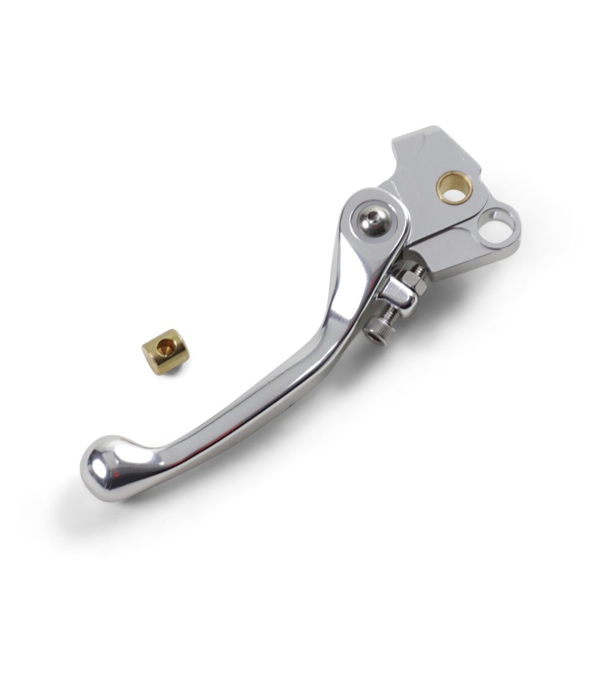 Levier d’embrayage retournable FG en aluminium 6061-T6 forgéCompatible avec les cocottes d’origine et Moose RacingCorps en aluminium 6061-T6 forgé pour une robustesse accrueStructure souple et incassable qui se replie vers l’arrière en cas d’impactRéglable sur mesure en fonction des différentes tailles de mainTête du levier également usinée à partir d’aluminium 6061-T6