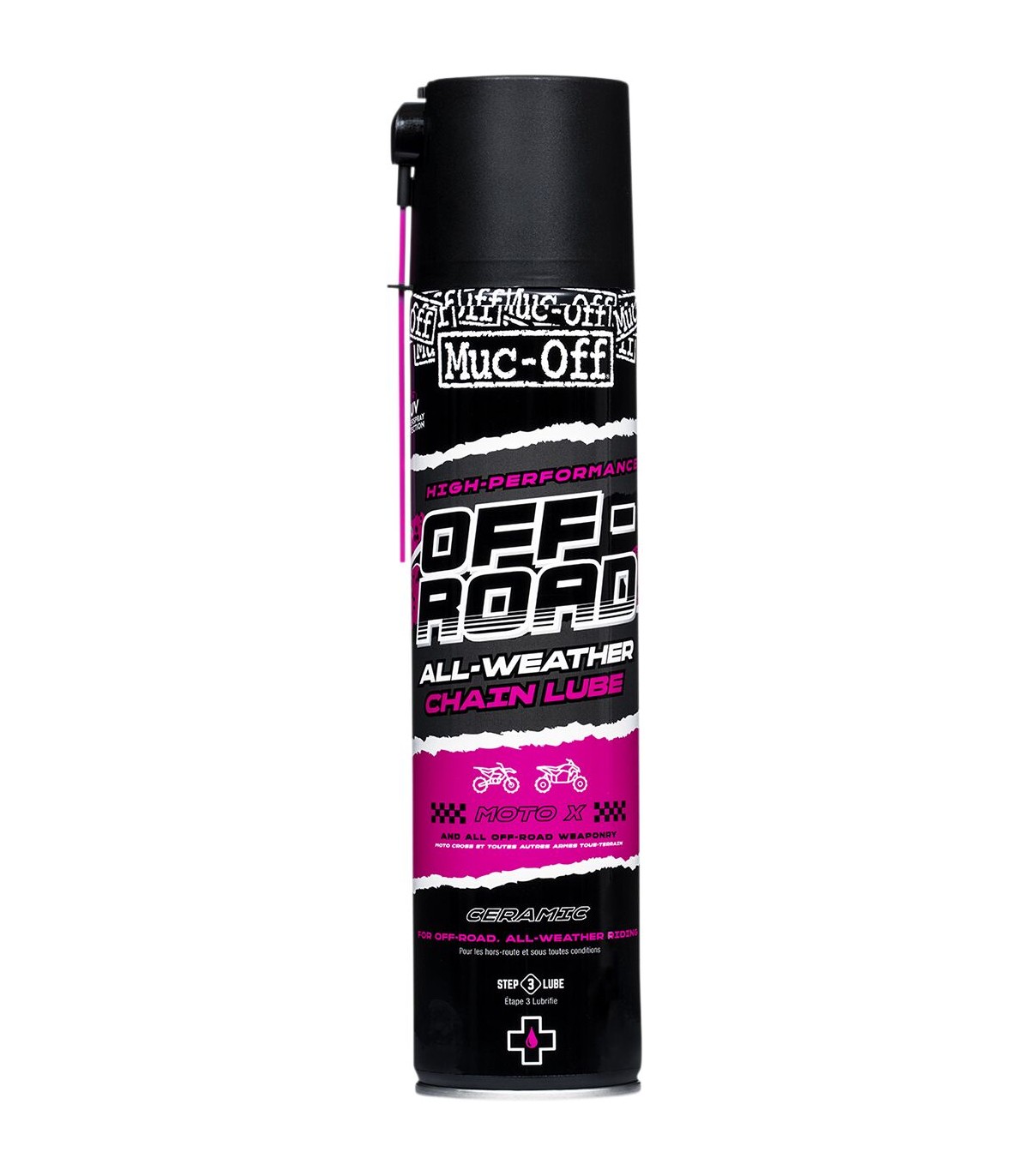 Off Road All Weather Chain LubricantDesigned for off-road, long-distance, all-weather ridingSuitable for Standard O, X and Z-ring chainsHigh-performance synthetic formulation for maximum protectionCeramic additives increase component life and maximize horsepowerContains UV overspry dyeCan be used on motorcross, enduro, trail motorcycles, quads and ATVs