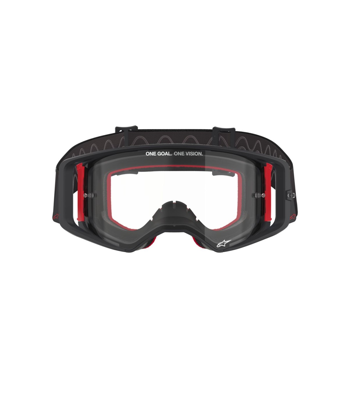 Supertech Corp GoggleAbsolute Vision™ (ABS-V) Lens features a specially formulated warm-colored tint that reduces uncomfortable stray flat light, enhancing eye comfort and clarityLens made from high-quality, impact-resistant polycarbonate material, the injection-molded lens ensures zero visual distortionThe Super-Lock® is a lens locking system that keeps the ABS Vision injected lens secure and sealed tightly in positionThe lens locking system allows the rider to quickly swap out the lens to another lens or Roll-Off system with a simple glide of the thumbThe DYAD solid outer frame holds the lens in place, creating a seal against flying debris and roostThe outer frame is double-injected to a soft, conforming inner frame made from exclusive A-FLEX face-forming material, allowing it to adapt to varying face shapes for an exceptional seal and fitThe Wrap-Around Outrigger system is designed to evenly pull the goggle into the face from the center of the frame, creating a secure seal and fitThe Ideal Strap Position (ISP) wedge positions the 45 mm silicone-backed strap perfectly on the helmet every time, ensuring an even pull on the goggle for the best fit possibleThe Supertech 3D molded, multi-layer face foam creates a comfortable fit for nearly every face shape, ensuring a perfect seal, a wide open field of view, and effective sweat management demanded by pro ridersMoisture channel acts as a gutter to direct sweat away from the goggle lens, preventing drips or splashesMoisture channel guides sweat to run across the top and down the sides of the frameForced-Air Ventilation system and frame design is angled to allow air to flow under the goggle and through the 100 PPI vents, ensuring maximum ventilationThe Supertech Goggles’ expansive field of view provides exceptional peripheral vision, designed to integrate seamlessly with Alpinestars' ULTRA-WIDE 48 mm Roll-Off systemThe 45 mm injected buckles replace the traditional fold-and-sew system, providing a sleeker, low-profile strap with easy adjustabilityThe 45 mm woven strap with silicone traction ensures everything stays in place whether on the track or trail