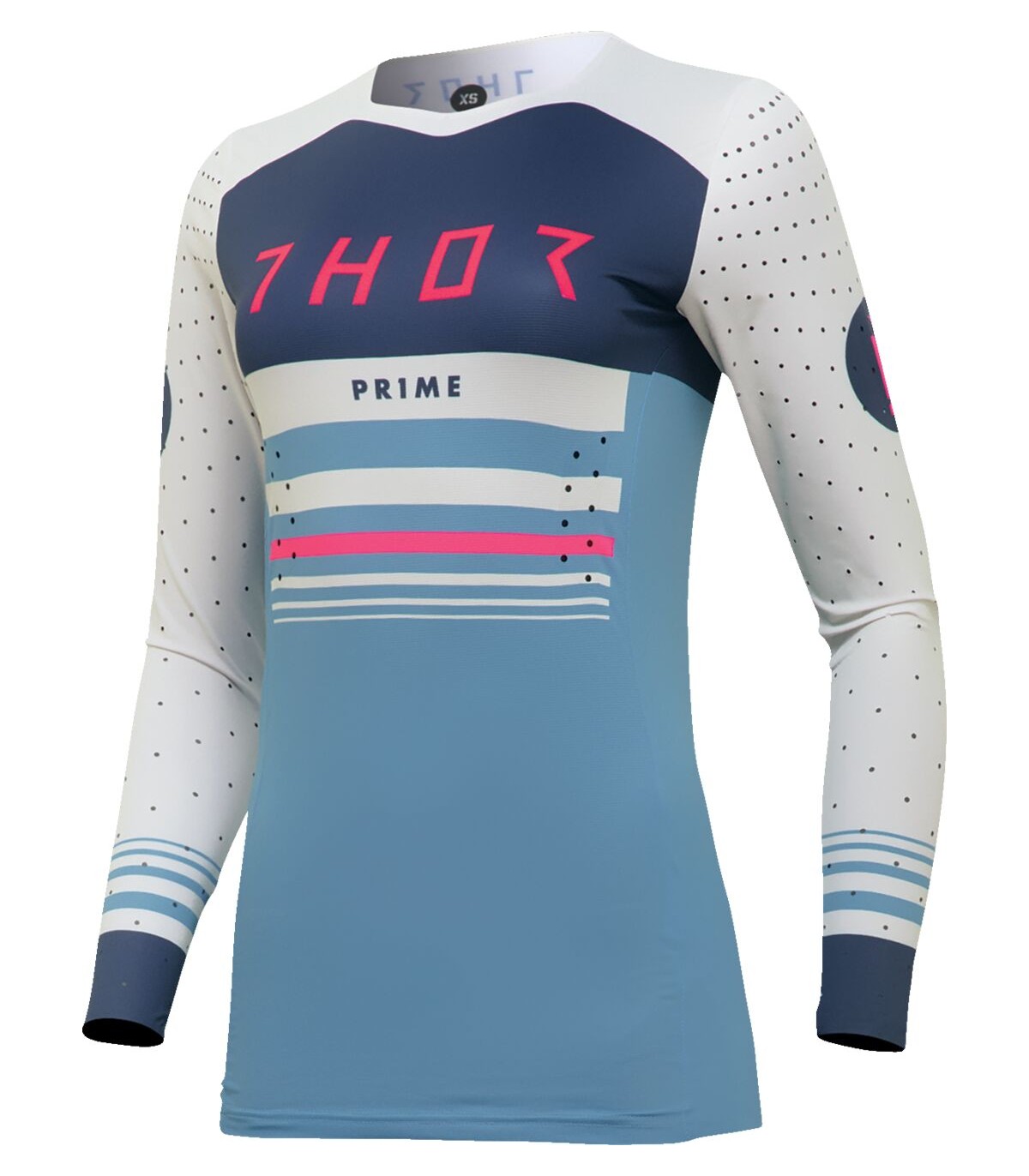 Women's Prime Blaze JerseyHybrid fit with set-in style sleevesPolyester/spandex sleeves feature 4-way stretch and laser perforation enhanced airflowSeamless, bonded collar and cuffsLaser cut holes for increased ventilation in key areasMinimal seams for maximum comfortTail silicone print helps keep jersey tucked inFlat stitch seams minimize irritationEngineered for performance athletic fit