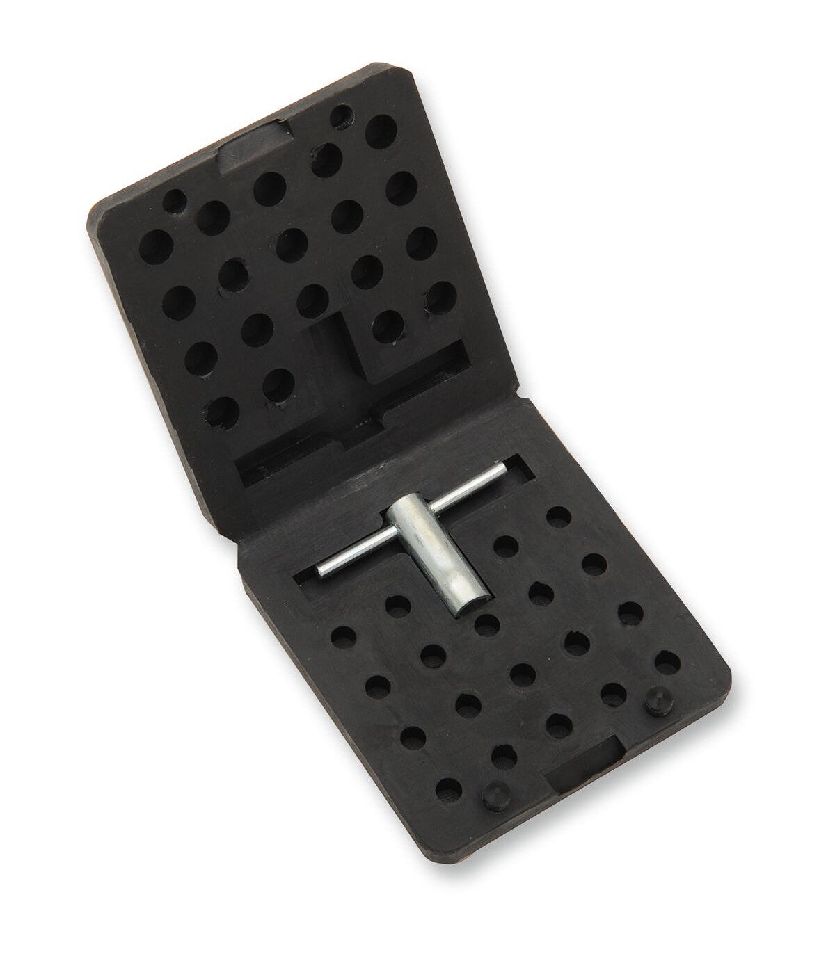 Porte-gicleurLogements individuels pouvant accueillir des gicleurs principaux, des gicleurs de ralenti et des aiguillesPour stocker jusqu’à 22 gicleurs principaux sans les endommager ; clé incluse