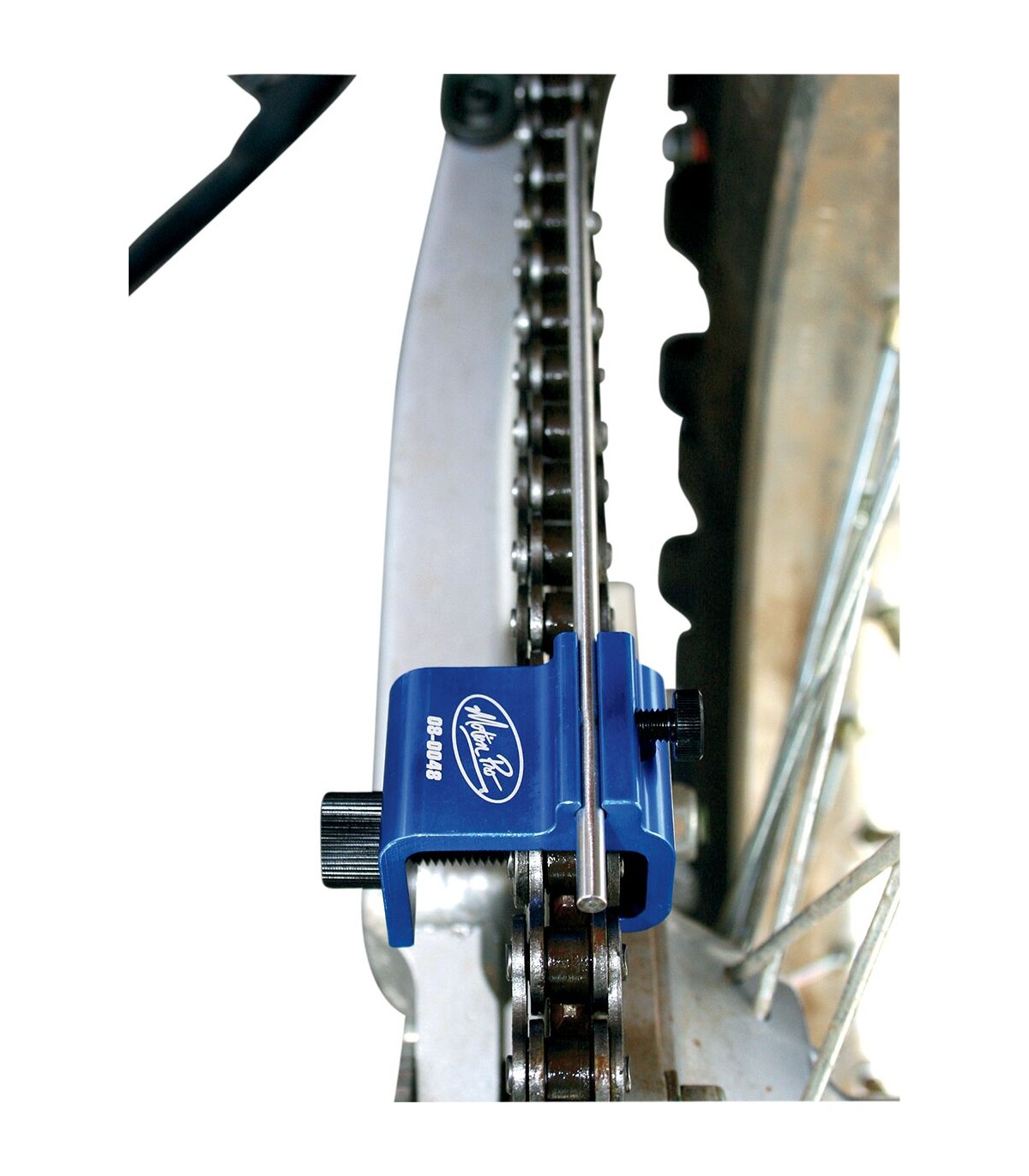 Chain Alignment ToolTool body clamps squarely to rear sprocket so the alignment rod will indicate sprocket alignment to chainQuick and accurate alignmentMade in the USA