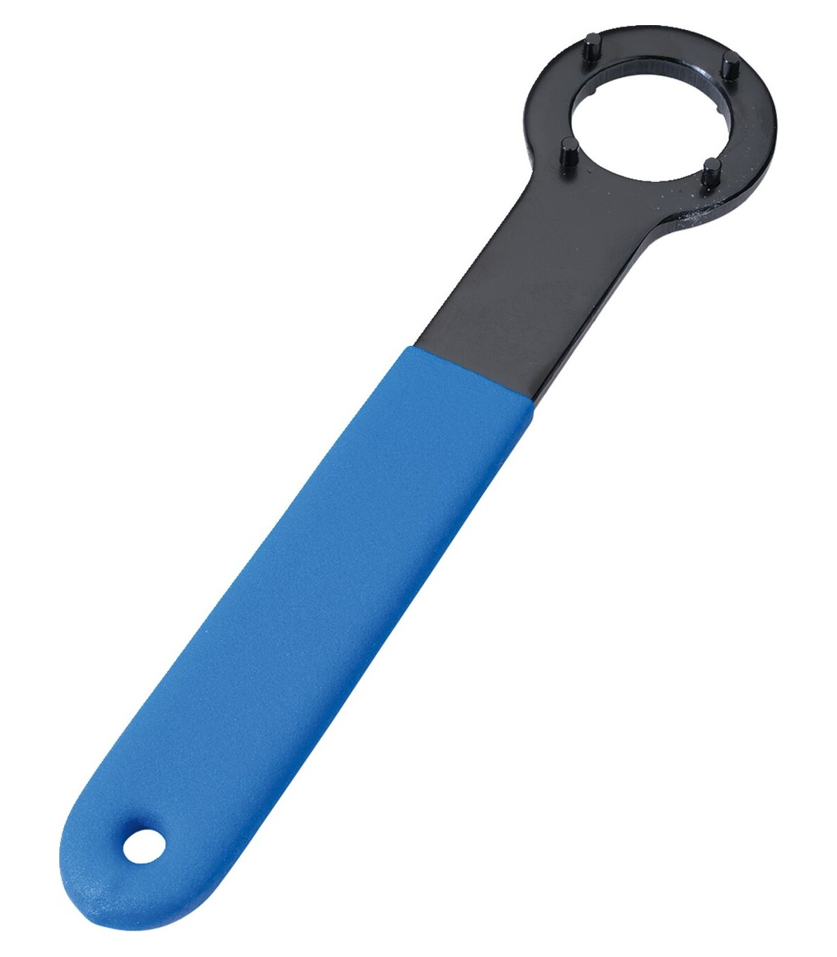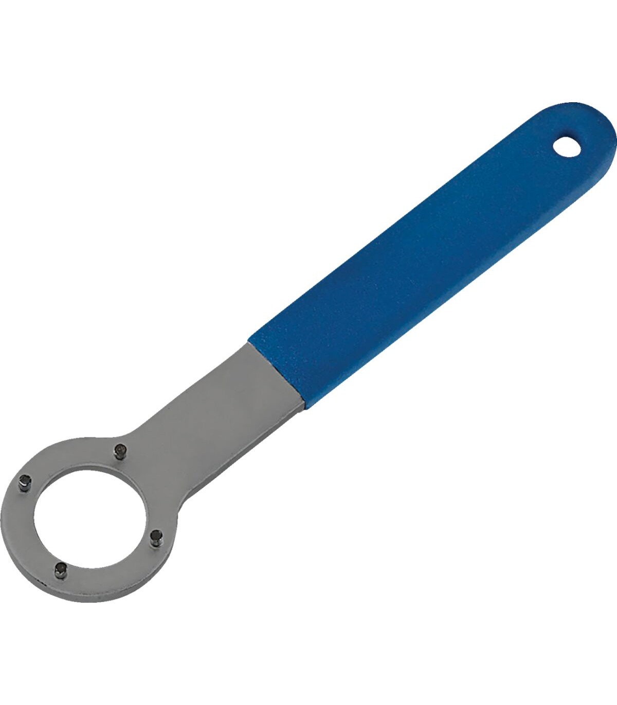 Spanner Wrench for WP Forks4 pin spanner wrench is used to loosen the fork caps on KTM models with 48 mm WP forksSlim design allows for fork cap removal without removing the handle barsComfort handle