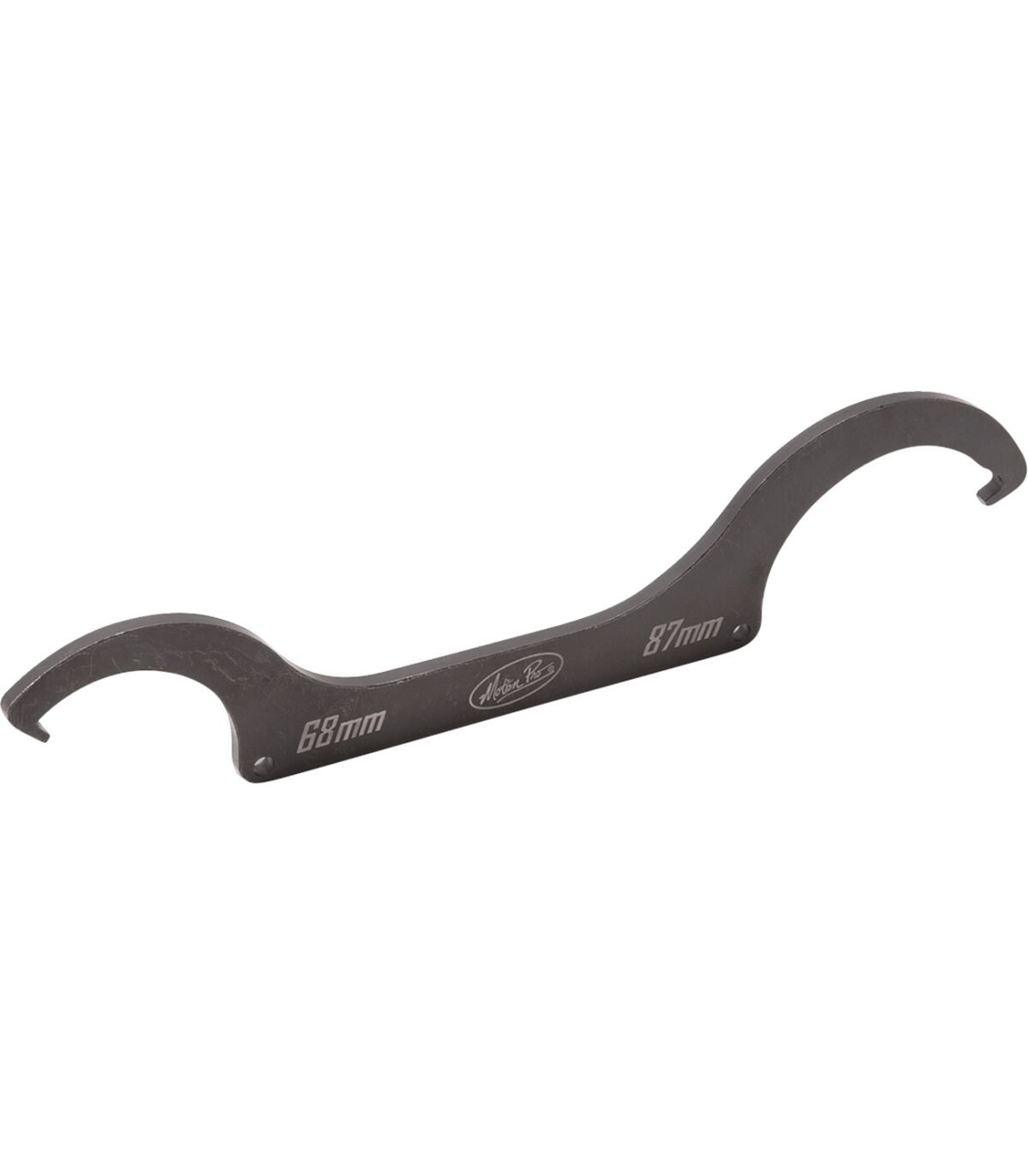 Shock Collar Spanner WrenchSized for 68 mm and 87 mm OD lock rings with a 8 mm notchHeat treated alloy steelFits many street, off-road and ATV single shock applications.
