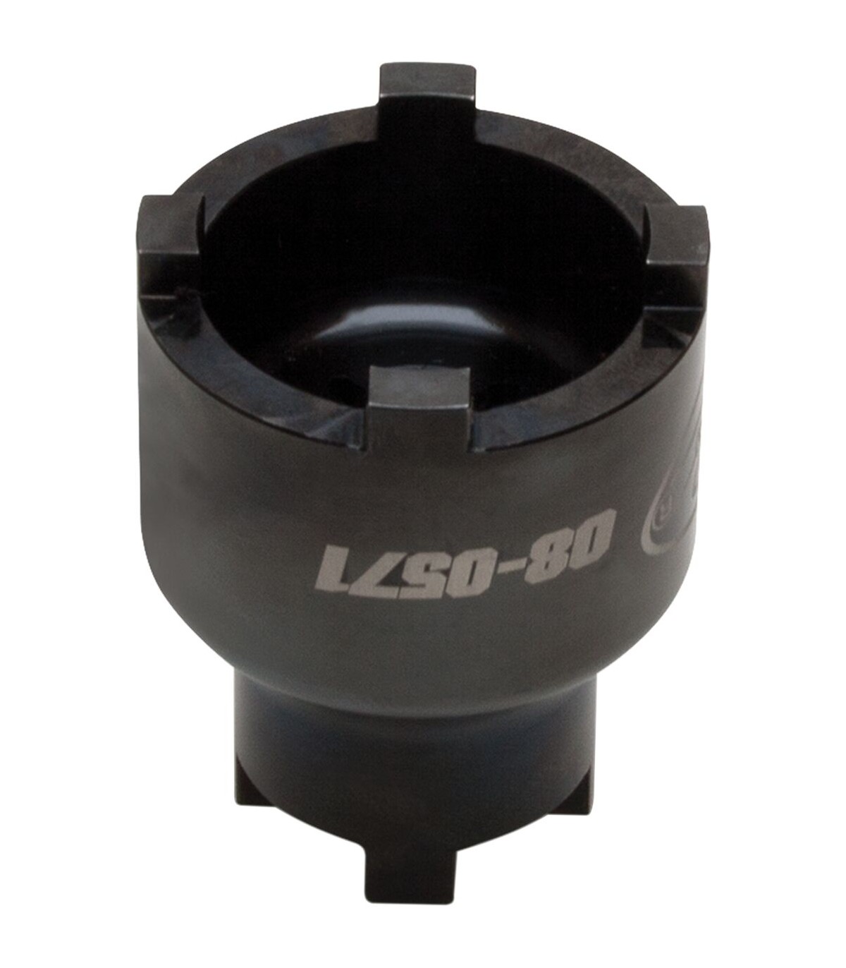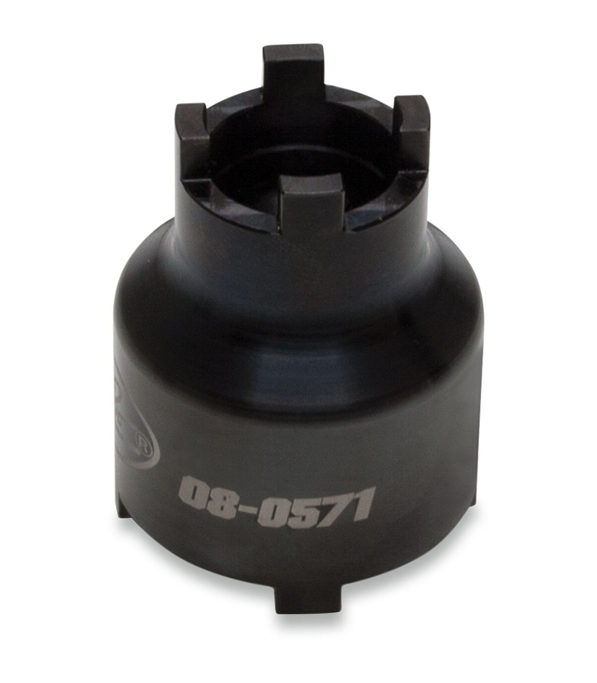 Spanner Nut SocketUsed for removal and installation of spanner (castle) lock nutsLaser-etched with Motion Pro logo and part numberHeat-treated for strength and durabilityPremium quality high carbon steelLifetime limited warrantyLarge end socket dimensions: 39 mm (1.54") OD x 30.5 mm (1.20") ID x 7 mm (0.28") Pin width/4 pins. Small end socket dimensions: 26 mm (1.02") OD x 19.9 mm (0.78") ID x 6.5 mm (0.26") Pin width/4 pins. See year, make and model footnotes for specifics on motor mount spanner socket or swingarm spanner socket.