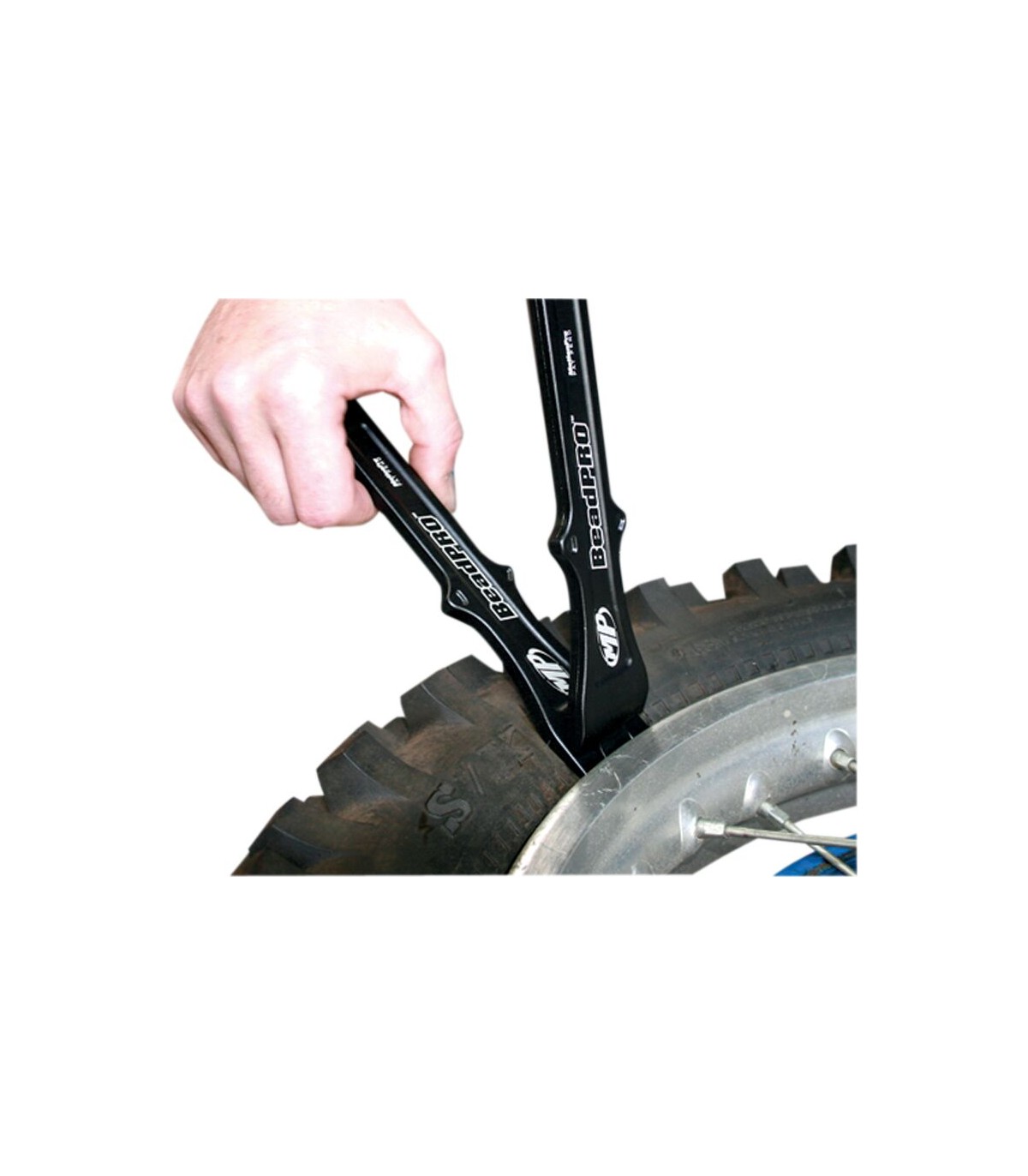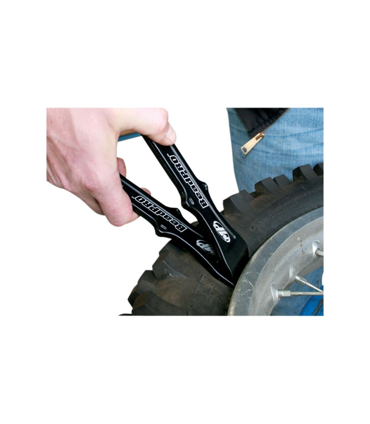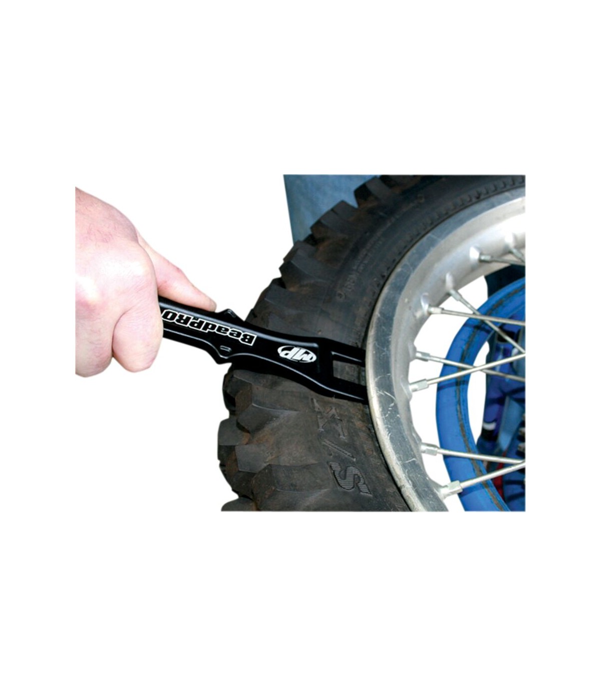 BeadPro™ Tire Bead Breaker and Lever Tool SetErgonomic handles with crossguard to keep hand from riding forwardForges 7075-T6 aluminum construction for strength and durabilityBreaks the bead on most street and off road motorcycle tiresIntegrated tire spoons for tire removal and installationLightweight and compact size is perfect for tool packsInnovative multi-use tire tool set