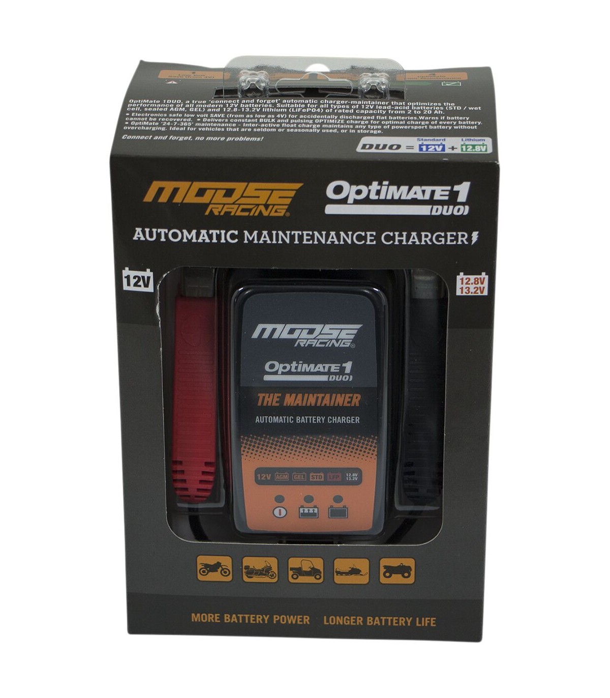 Chargeur OptiMATE 1 DUO MSE avec prise Royaume-UniChargeur/mainteneur de charge de 12 V/12,8 V et 0,6 A à 4 phasesLe kit OptiMate 1 délivre une charge précise contrôlée par microprocesseur et de longues périodes de fonctionnement sans entretien.Il entretient n'importe quelle batterie plomb-acide de 12 V sans jamais la surcharger ; bouchon/cellule humide, AGM (MF) scellée ou GEL et batterie lithium de 12,8/13,2 V (LiFePO4).Idéal pour les véhicules utilisés rarement ou de façon saisonnière ou pour ceux qui sont entreposésLe programme d’entretien OptiMate délivre uniquement la puissance requise à la batterie, sans surcharge ni sous-charge.Entretient N'IMPORTE QUELLE batterie au lithium, AGM GEL ou standard de 12 V/12,8 VMaintenance de la batterie à long terme 100 % automatique et 100 % sécurisée Après avoir raccordé celle-ci, vous n’avez plus à vous préoccuper de rien !Un chargeur/mainteneur de charge simplissimeVous n’avez pas besoin de choisir le programme adéquat ; le dispositif s’en charge.