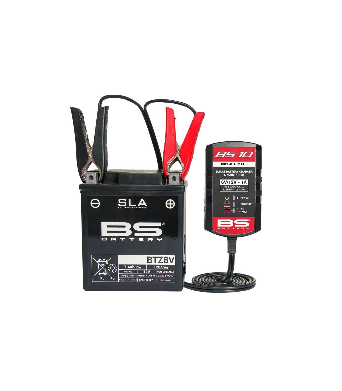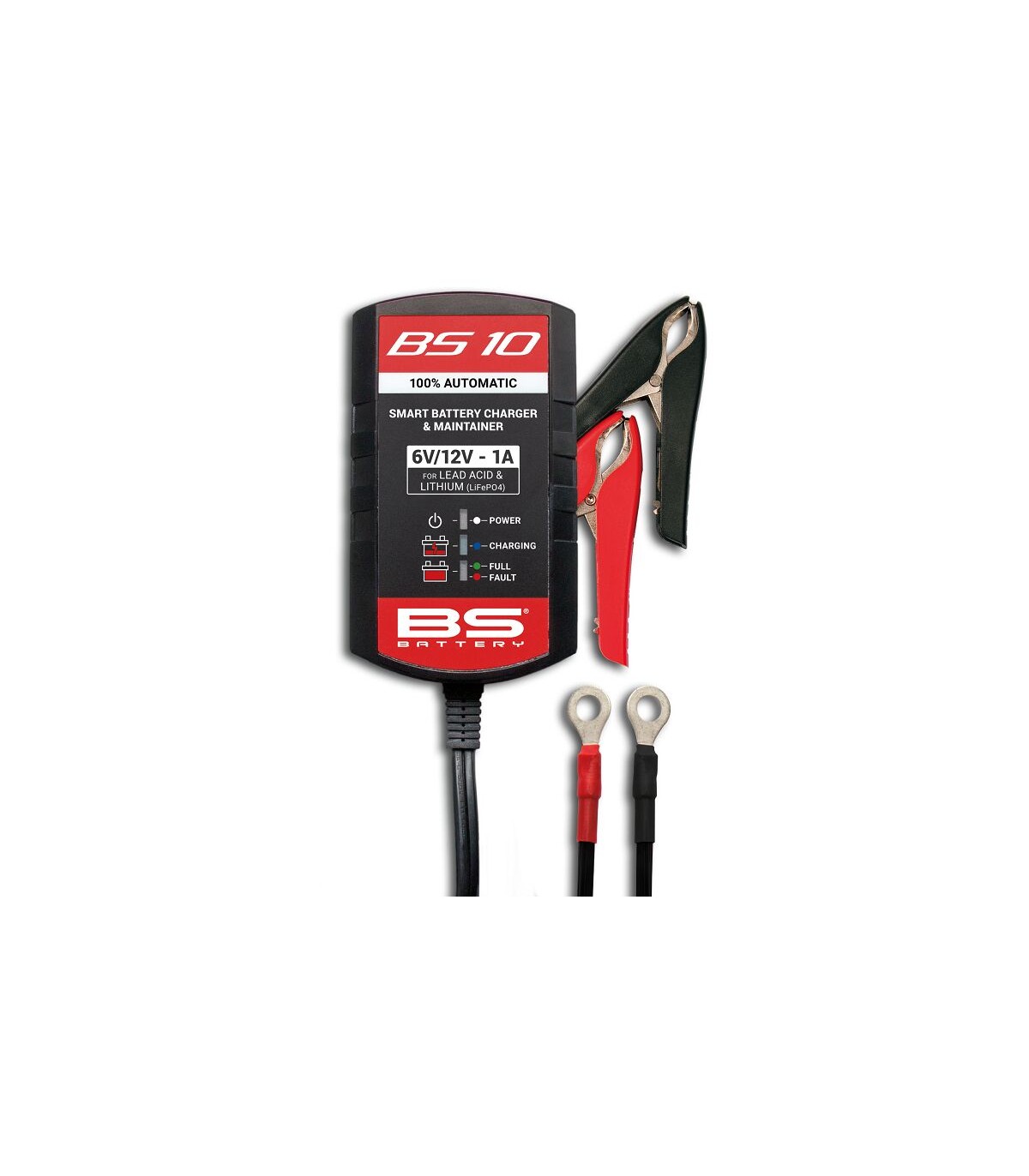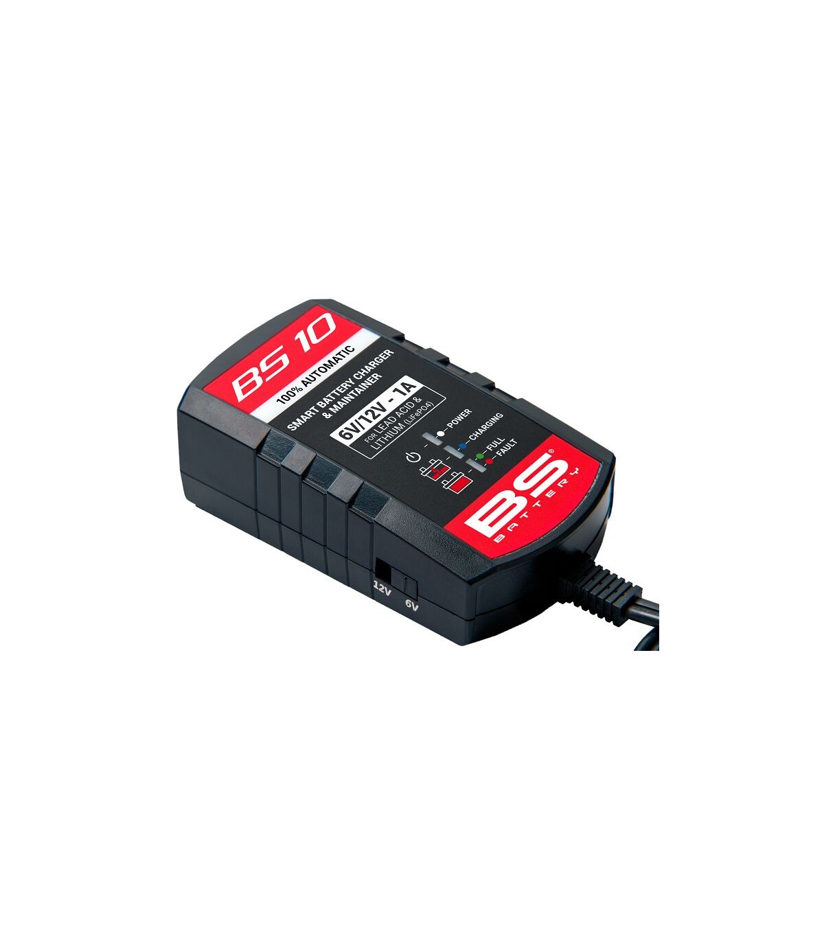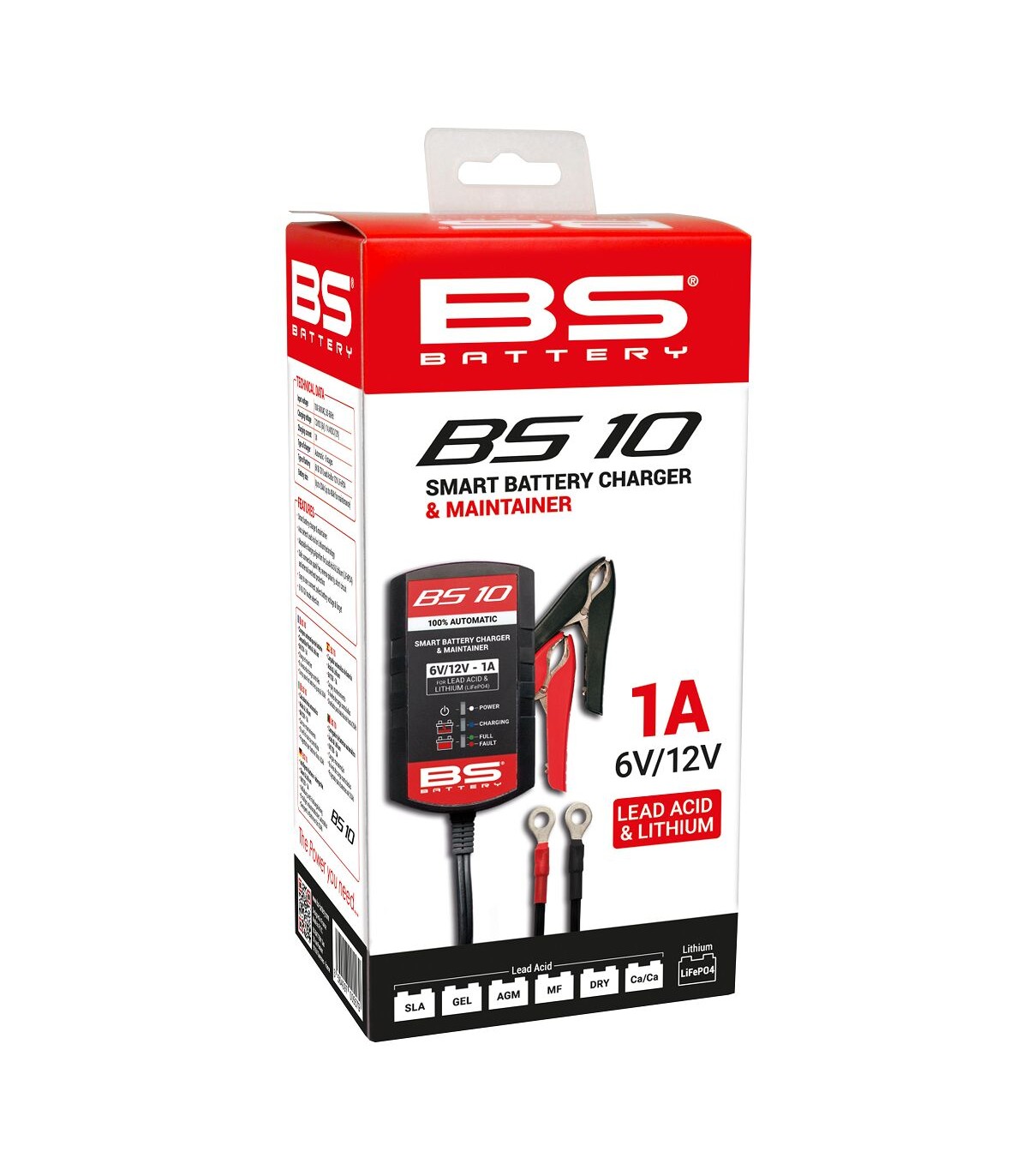 BS10 BATTERY CHARGER BS10 6V/12V-1A - UK PlugAuto detect Lead Acid or Lithium technologySmart Charger & Maintainer rated at 1A6V & 12V mode selectionZero overcharge: adaptable charging algorithm (no float stages for Lithium)Easy to use: connect, select battery voltage & forgetRoad trip friendly : small, light & compactSafe : connection spark free, reverse polarity, short circuit and internal overheat protection