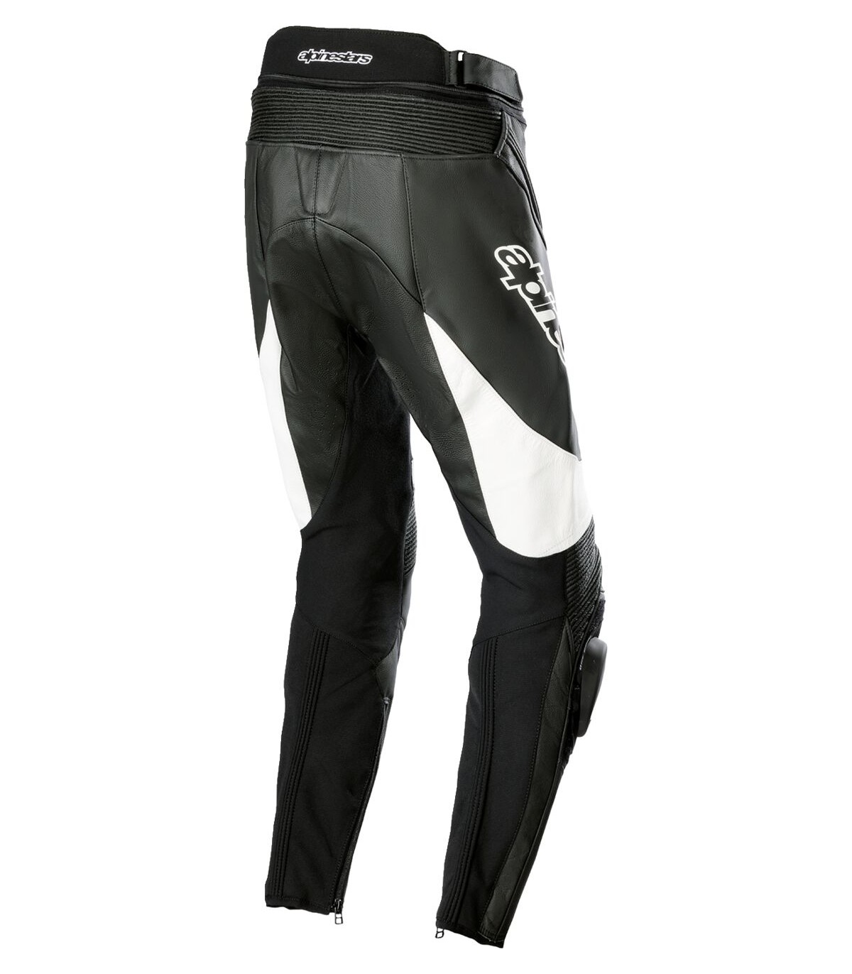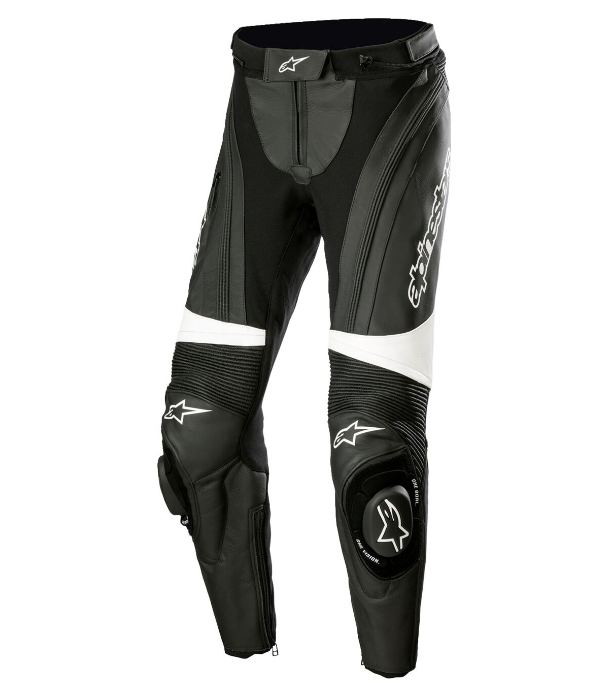 Stella Missile v3 PantsVentilation panel on the knee delivers maximum airflow.‘High Flex’ design for an optimized fit and enhanced freedom of movementComfort fit; design follows the contours of the knee for the optimal blend of comfort and freedom of movementFeaturing an engineered fit designed to deliver the highest level of active race protection, these pants are Tech-Air® ready and can accommodate the Tech-Air®10 Airbag System with its extended hip protectionOptimized for an engineered women’s fitPremium leather main chassis constructed from 1.3mm genuine bovine leatherDual layers in exposed areas for additional abrasion resistanceAccordion leather stretch zones above the knee offer improved flexibilityExtensive stretch panels on calf and crotch area for improved fit and feelExtended high rear waist construction provides greater overlap with the riding jacketPre-curved leg construction helps improve fit and reduce riding fatigueStrategically positioned ventilation on thigh for internal air coolingHook and loop waist adjuster for secure and personalized fitWaist connection zipper allows attachment to Alpinestars riding jacketsAlpinestars GP-R Lite internal protection on kneeInternal mesh lining with stretch panel inserts work in conjunction with outer stretch zones for freedom of movementReplaceable Sport knee sliders for excellent impact and abrasion resistanceEN17092-3:2020 – AA Class