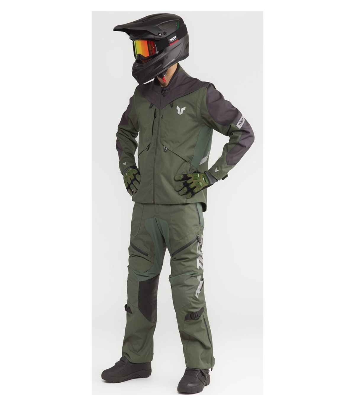Terrain Over-the-Boot PantsOver-the-boot constructionRip-stop, abrasion resistant paneling in high-wear areasDurable stitching throughoutFull grain leather panels located inside of knees for optimal grip and durabilityTwo high-volume pockets with waterproof zippersInternal hip pocketStrategically placed intake vents with waterproof zippersDura-motion paneling provides flexibility without compromising durabilityDouble-lock front closure systemDual side cinches allow for precise waist adjustmentTaped zippers, DWR coating and Hipora membrane for increased water resistanceMesh comfort linerYKK® zippers