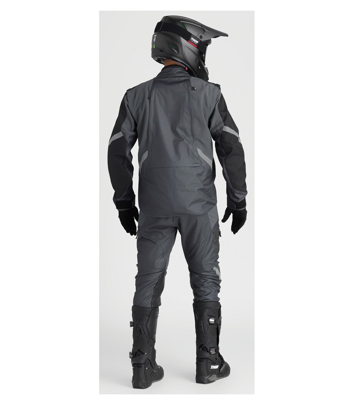 Terrain In-the-Boot PantsIn-the-boot constructionRip-stop, abrasion resistant paneling in high-wear areasDurable stitching throughoutFull grain leather panels located inside of knees for optimal grip and durabilityTwo high-volume pockets with waterproof zippersInternal hip pocketStrategically placed intake vents with waterproof zippersDura-motion paneling provides flexibility without compromising durabilityDouble-lock front closure systemDual side cinches allow for precise waist adjustmentMesh comfort linerTaped zippers, DWR coating and Hipora membrane for increased water resistanceYKK® zippers