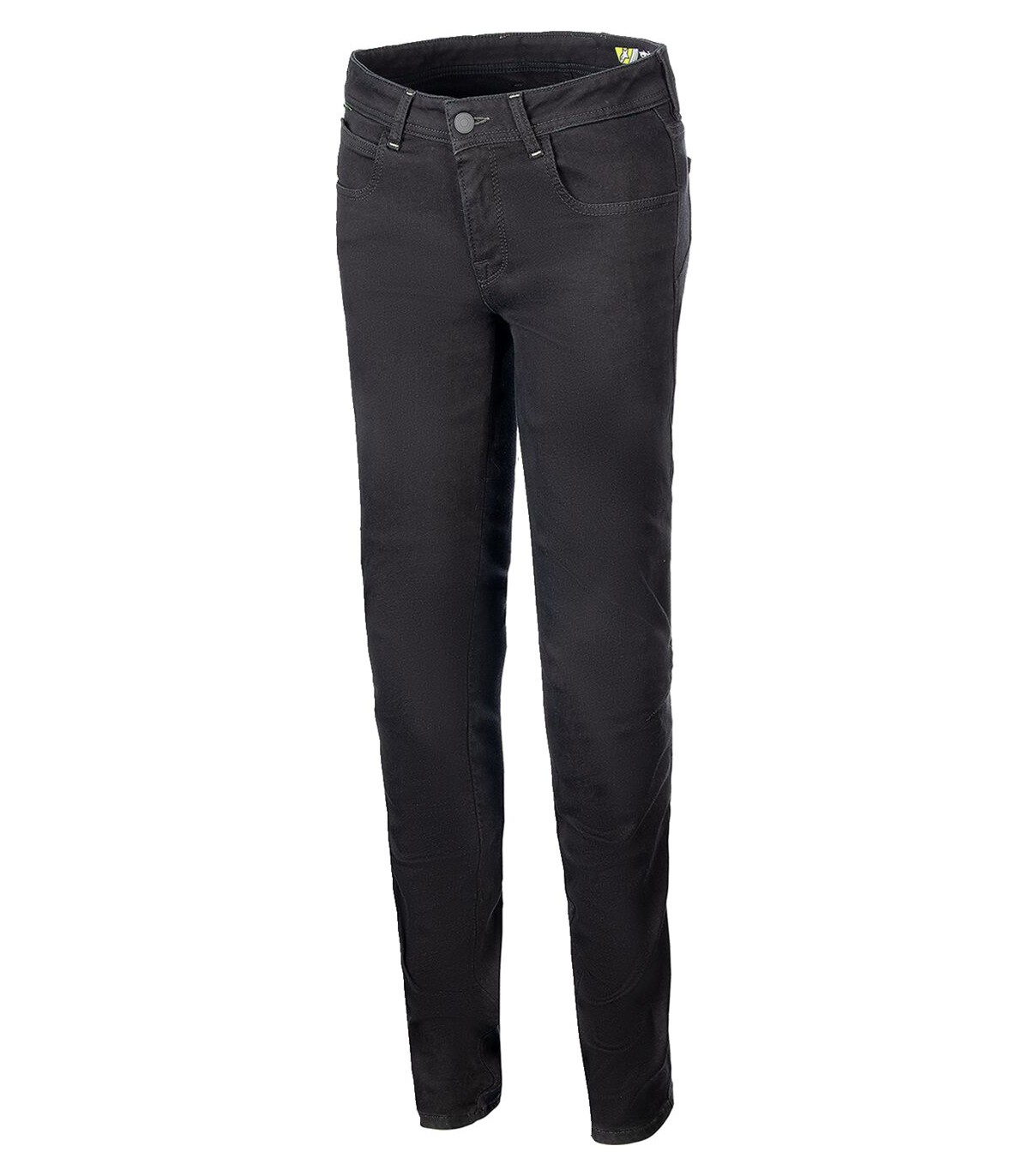 Daisy v3 Women's Riding DenimAnatomically engineered for an optimized women’s fit, the Daisy v3 Denim Pants feature a slim fit with a carefully shaped high back waist and a pre-curved leg for enhanced comfort, and are constructed from a ‘jogging pants’-style cotton which is ultra-soft and very stretchy, creating a protective casual riding pant with a feminine silhouette that is perfect in any urban environmentRegular slim cut tech denim for a fashionable and long-lasting woman’s performance riding fitThree knee armor pockets are spaced in 3 cm increments and have color coded stitching to easily find the correct pocket; perfect for creating a comfortable personalized fitSophisticated finishing and trim details with subtle branding, refined stitching and proportions, and a selvedge look inseam on the inner leg for an authentic casual vibeAdjustable Nucleon Flex Plus Level 1 knee armor for high levels of impact protection, with three positions for better knee protector positioning, included and installed, as well as pockets for hip protection (available as an optional upgrade)Interior aramid fiber reinforcement in the seat, hip and knee areas for abrasion and tear resistance in critical areasEN 17092-4:2020 – A ClassEN 1621-1:2012 Nucleon Flex Plus knee Level 1