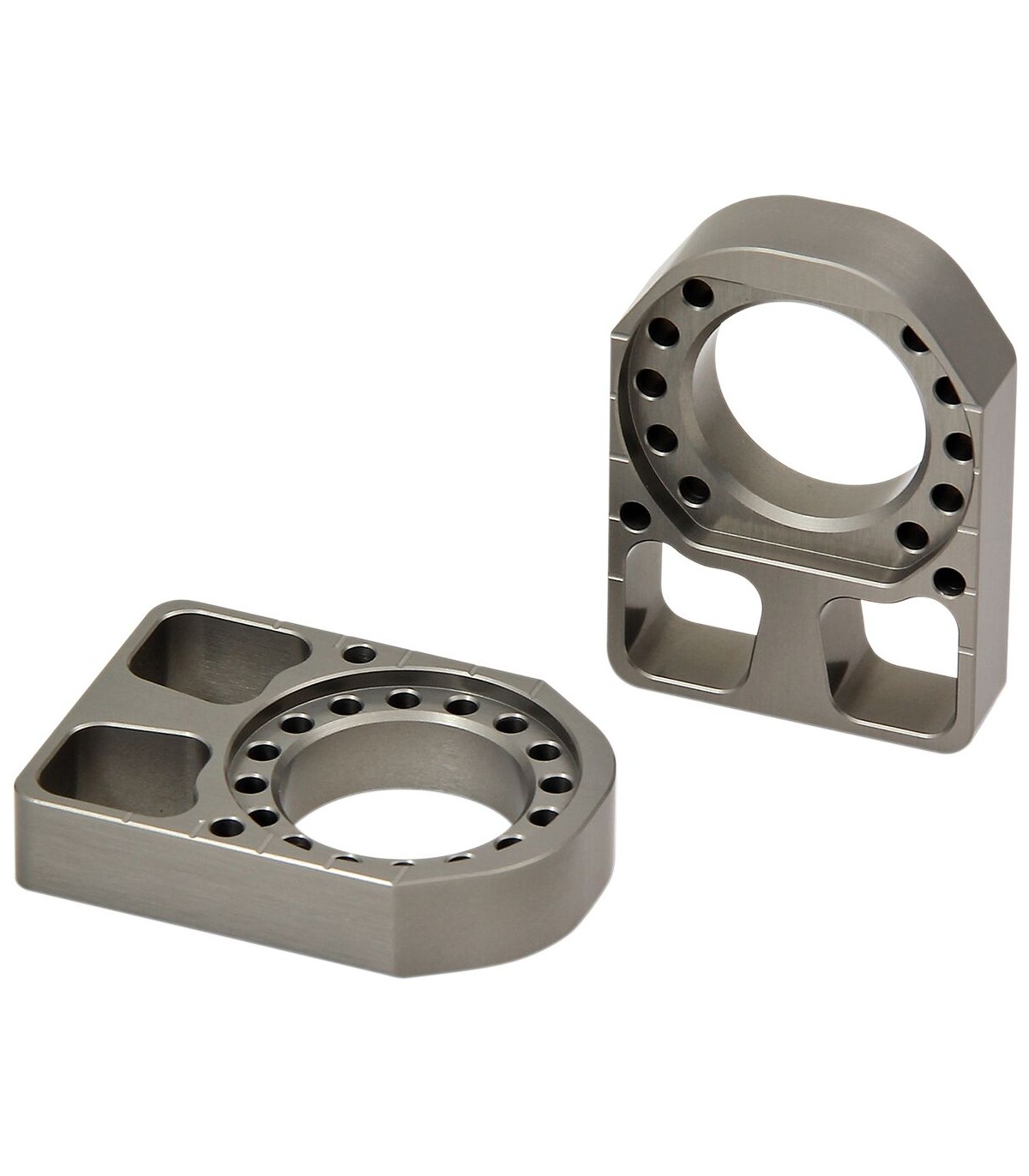 Axle BlocksAid in rear wheel alignment, which improves high-speed stability and extends chain and sprocket lifeCNC-machined from billet aluminum for strength and light weight