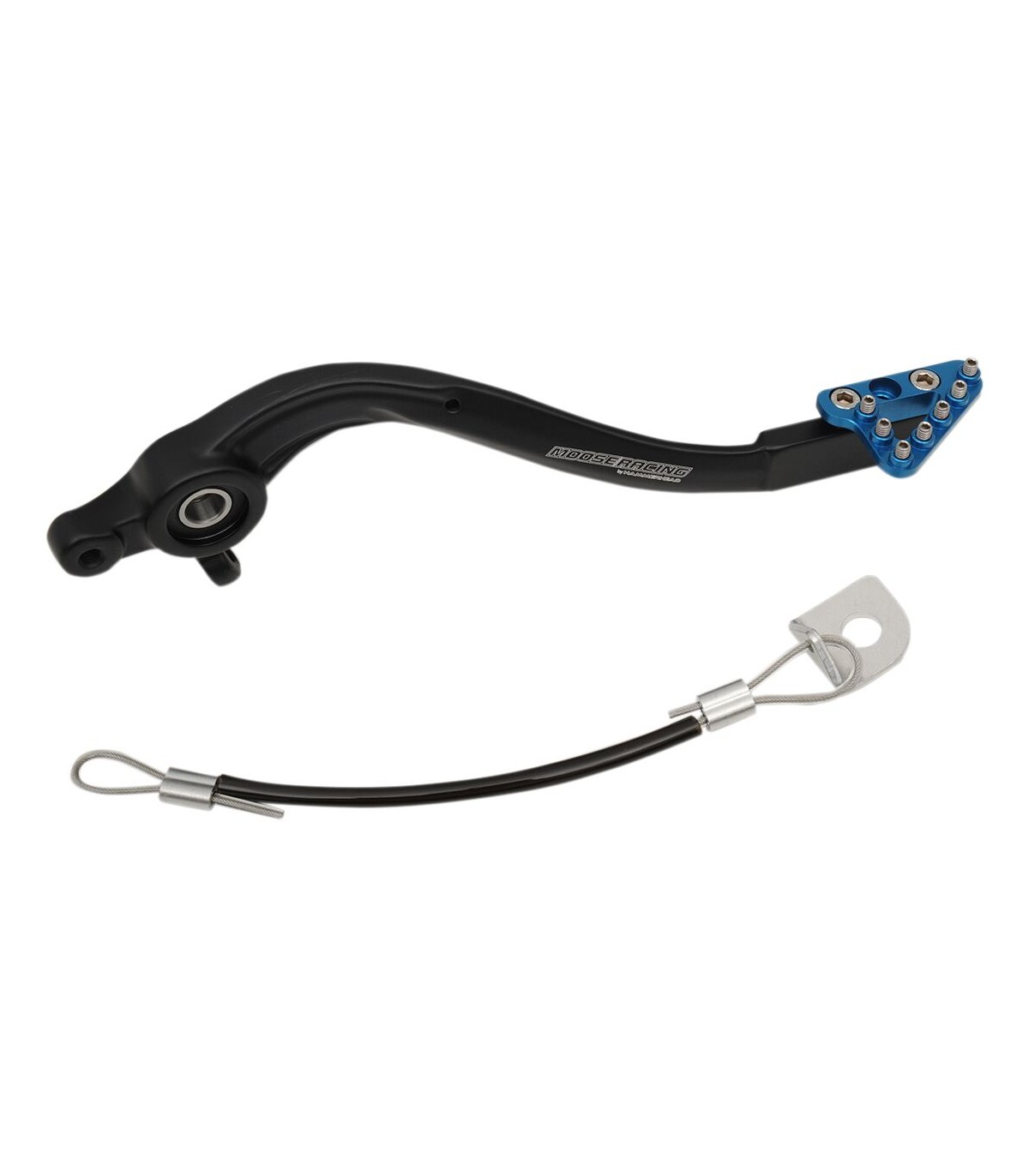 Pédale de freinMoose Racing s'est associé à Hammerhead pour vous offrir la pédale de frein ultimeLes bras de la pédale de frein sont forgés à partir d’aluminium taillé dans la masse 6061 avec axes de chape de frein en acier inoxydable et douilles de pivot en laiton.L'extrémité de frein finement usinée CNC est dotée d'un jeu de vis en acier inoxydable pour améliorer sa durée de vie et son adhérenceLes embouts des pédales de frein peuvent être ajustés dans deux positions de montage dans le sens de la longueur et sont connectés à l'aide de vis 6 pans en acier inoxydableLe bras de pédale de frein anodisé est en noir mat, tandis que les embouts sont anodisés et peints dans des couleurs différentes selon la marque de la motoChaque pédale de frein est dotée d'un câble de maintien en acier inoxydablePièce anodisée et dotée d'une protection UV pour conserver sa couleurFabrication aux États-Unis