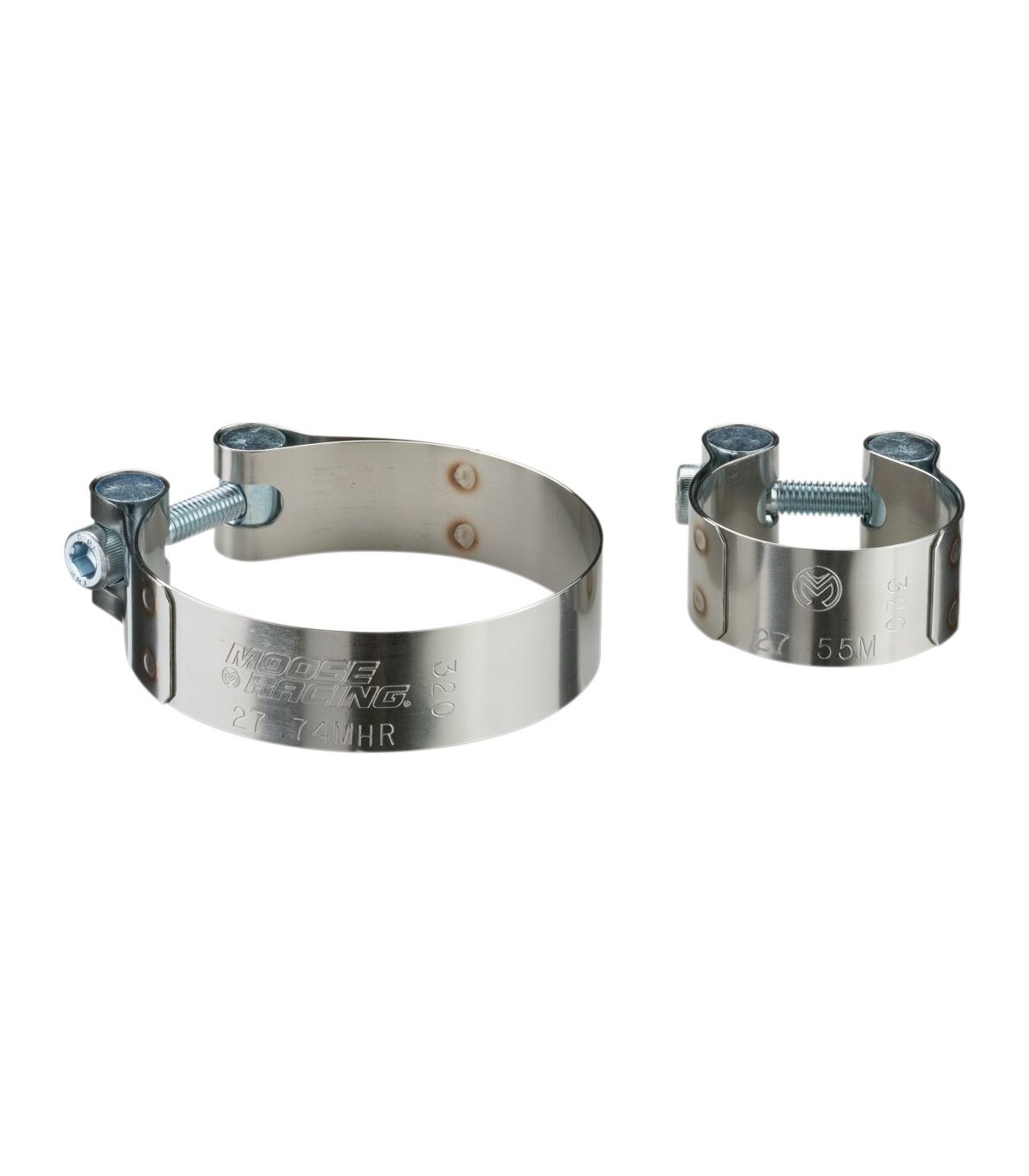 Collier de serrage en acier inoxydable pour échappementLe collier de serrage à tourillon garantit une pression de serrage plus importanteBoulon à tête hexagonale d'ajustementRésistent au chauffage et au refroidissement répétés du système d'échappementFabrication aux États-Unis