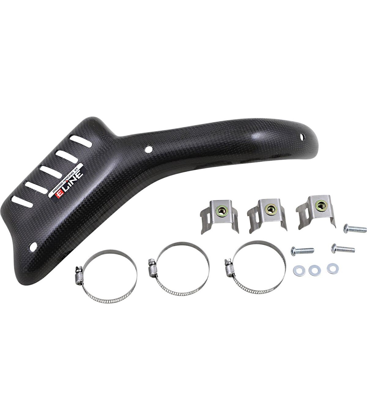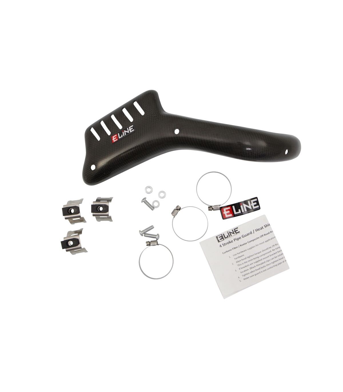 Protection de pot d’échappement E LineMoulées individuellement pour s’adapter parfaitement à chaque foisMatériau composite antibalistique, fibre de verre et résines à hautes températures offrent une protection exceptionnelle : 8 fois plus résistant et 2 fois plus rigide que l'aluminium, le matériau reste 1,5 fois plus léger que ce dernierLe niveau de chaleur du tube d’échappement atteint par les moteurs 4 temps peut facilement fragiliser les échappements ; la chaleur peut également abîmer les pantalons parfois coûteux, ce qui peut être évité en installant une protection de pot d’échappemeProtègent des impacts sur une large surface ; un effet que les protections en aluminium ne parviennent pas à imiter