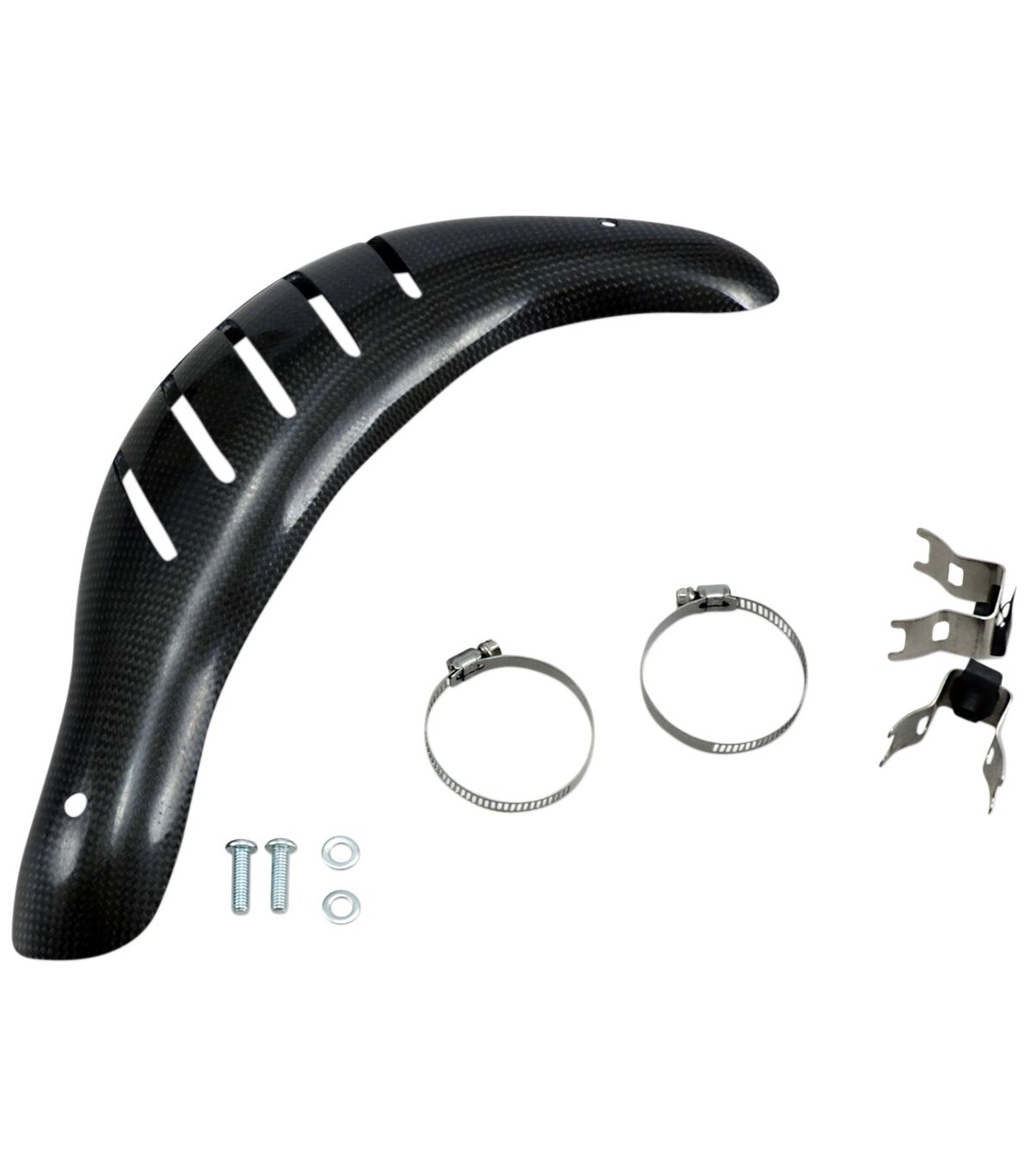 Protection de pot d’échappement E Line pour 4 tempsMoulées individuellement pour s'adapter parfaitement à chaque foisLa fibre de carbone, le matériau composite antibalistique, la fibre de verre et les résines haute température garantissent une protection exceptionnelleLe composite léger a une résistance à la tension 75% plus élevée que l'aluminiumProtection contre les bosses qui diminuent la puissance et augmentation de la puissance grâce à une température des flux de gaz plus élevée