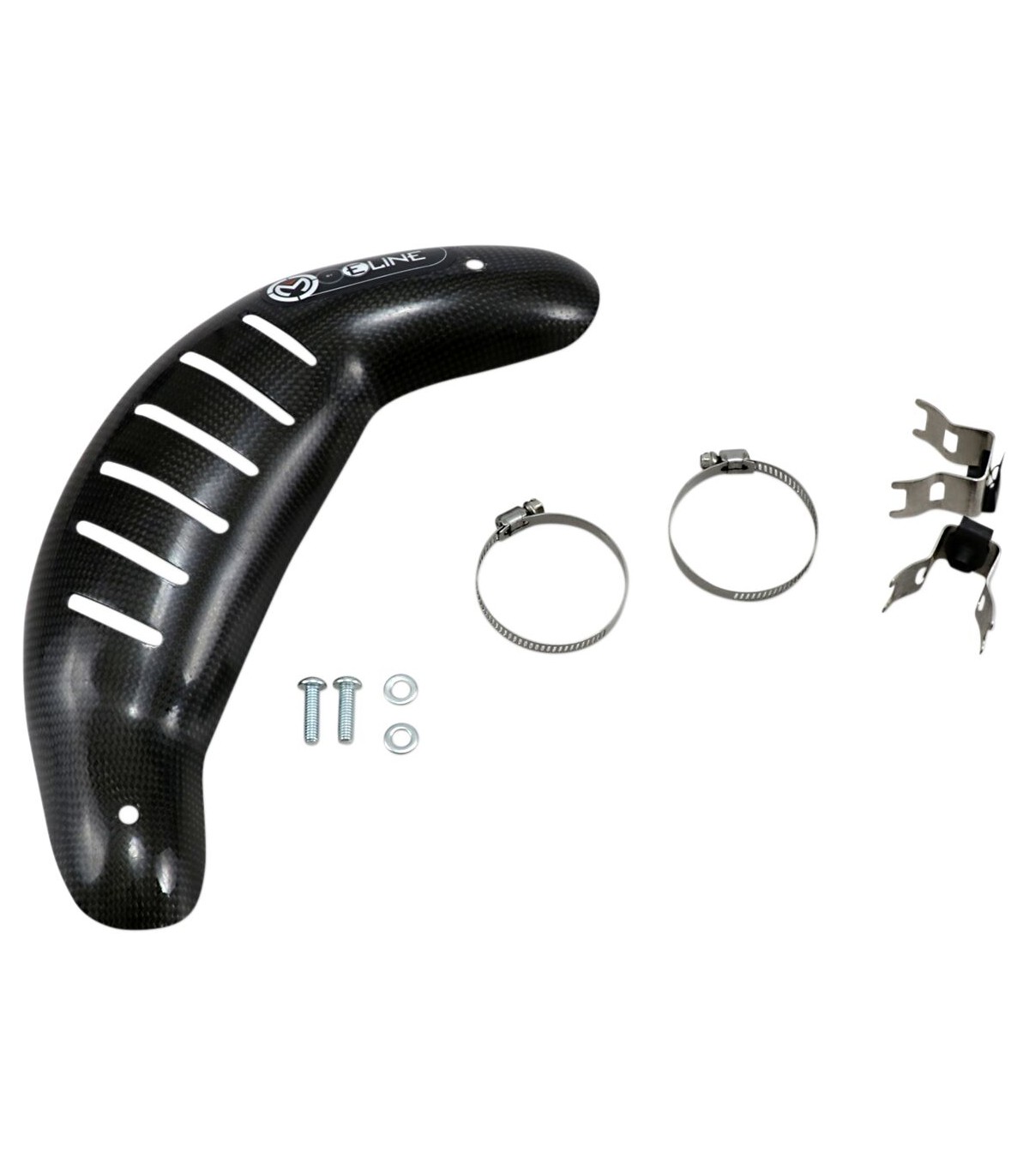 Protection de pot d’échappement E Line pour 4 tempsMoulées individuellement pour s'adapter parfaitement à chaque foisLa fibre de carbone, le matériau composite antibalistique, la fibre de verre et les résines haute température garantissent une protection exceptionnelleLe composite léger a une résistance à la tension 75% plus élevée que l'aluminiumProtection contre les bosses qui diminuent la puissance et augmentation de la puissance grâce à une température des flux de gaz plus élevée
