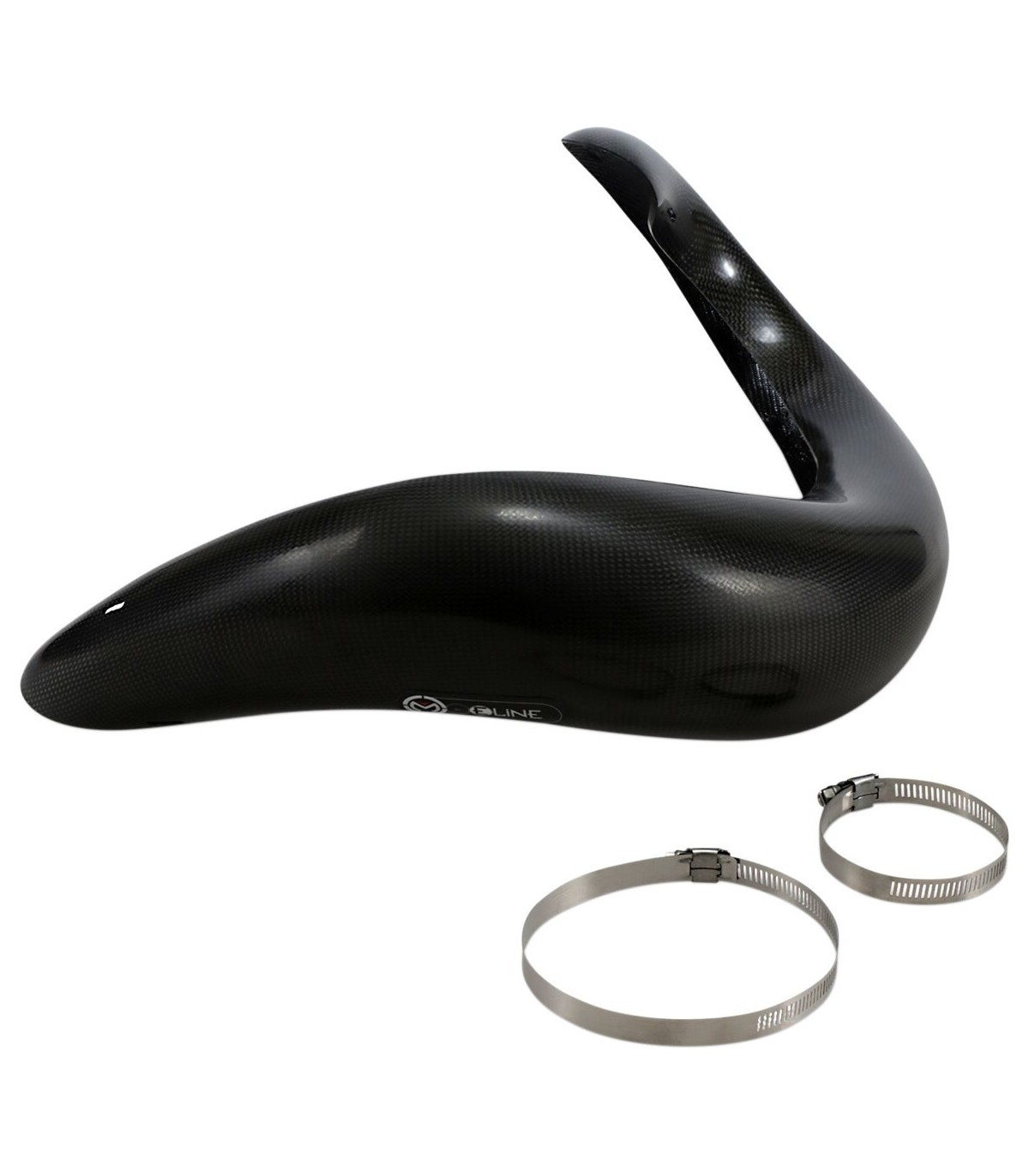 Protection de pot d’échappement E Line pour 2 tempsMoulage sur mesure pour une adaptation parfaite à chaque foisLa fibre de carbone, le matériau composite antibalistique, la fibre de verre et les résines haute température garantissent une protection exceptionnelleLe composite léger a une résistance à la tension 75% plus élevée que l'aluminiumProtection des pots d’échappement contre les bosses qui diminuent la puissance et augmentation de la puissance grâce à une température des flux de gaz plus élevée