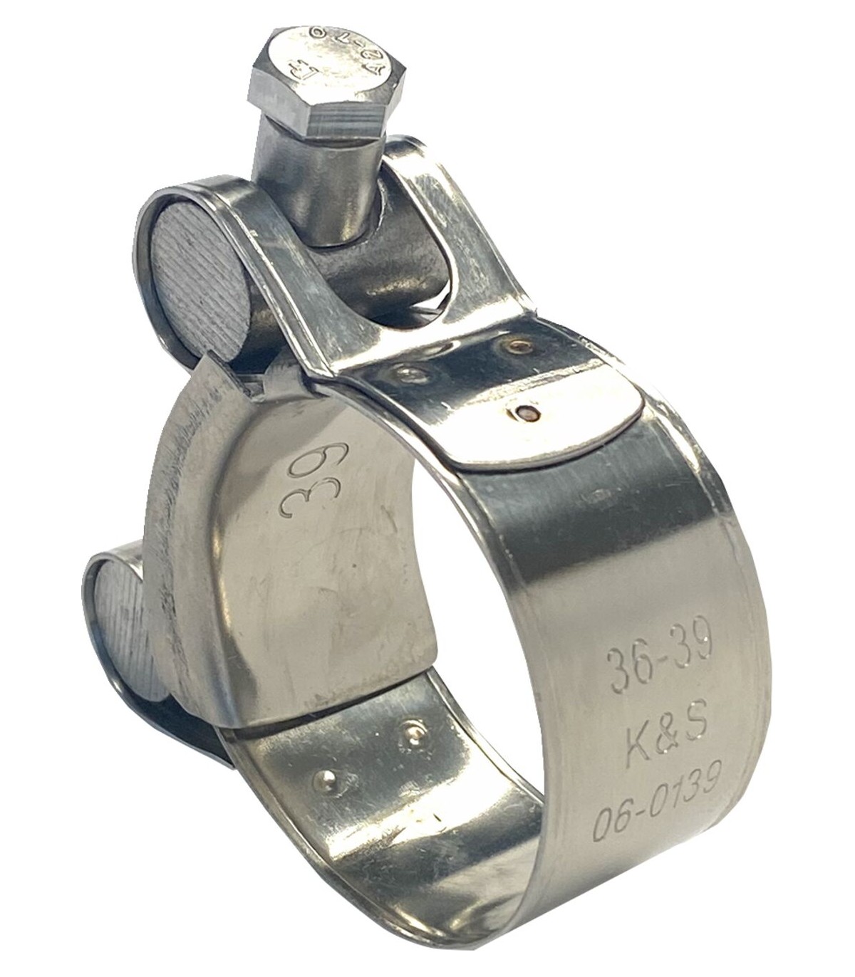 Exhaust Pipe ClampCorrosion resistant and temperature resistantBarrel-and-band design for high clamping pressureSold individually; packer in poly bag and K&S header card