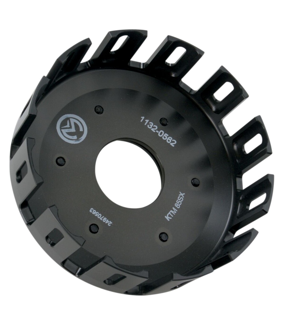Cloche d'embrayage taillée dans la masseAméliore les performances de l'embrayage et la dissipation de chaleurUsinage avec précision dans la masse à partir d'aluminium de qualité aéronautique T-6Avec anodisation dure pour une résistance à l'usure plus importante que les pièces d'origineLe design avancé permet à l'embrayage de tourner de façon régulière, ce qui diminue la chaleur lors du débrayageLes cloches d'embrayage sont dotées de vis pour permettre une fixation aux clips d'origineDisques lisses, disques garnis et ressorts vendus séparémentFabrication aux États-Unis