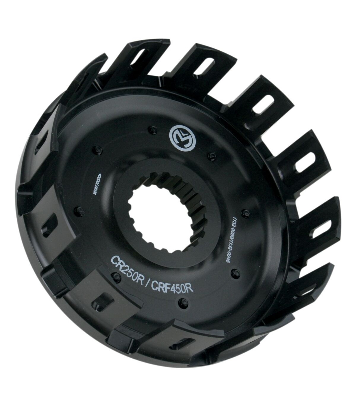 Cloche d'embrayage taillée dans la masseAméliore les performances de l'embrayage et la dissipation de chaleurUsinage avec précision dans la masse à partir d'aluminium de qualité aéronautique T-6Avec anodisation dure pour une résistance à l'usure plus importante que les pièces d'origineLe design avancé permet à l'embrayage de tourner de façon régulière, ce qui diminue la chaleur lors du débrayageLes cloches d'embrayage sont dotées de vis pour permettre une fixation aux clips d'origineDisques lisses, disques garnis et ressorts vendus séparémentFabrication aux États-Unis
