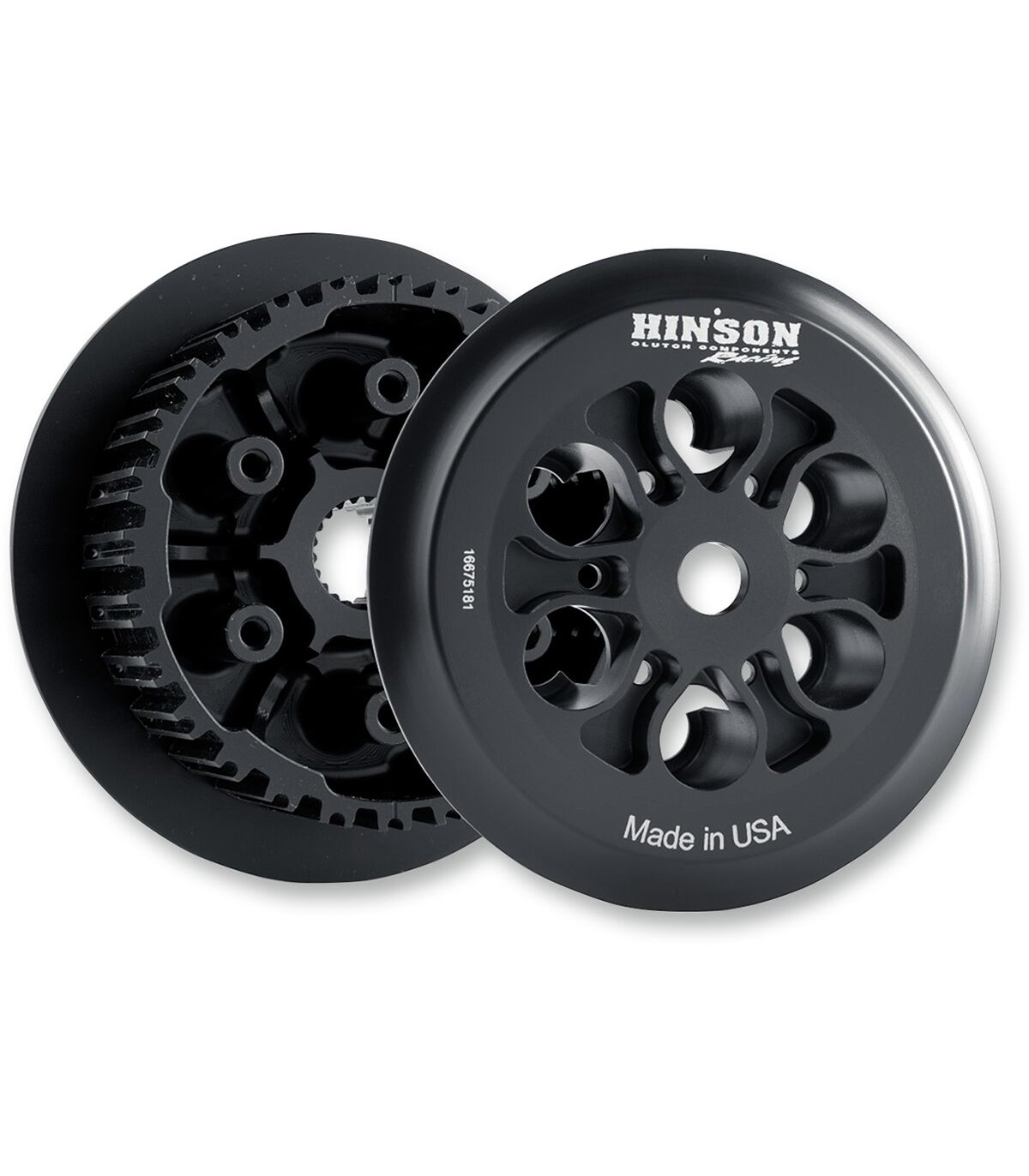 Kit plateau de pression/cloche d’embrayage interne BilletproofUsinage avec précision à partir d'aluminium T-6 taillé dans la masse de qualité aéronautique et à surface Akadized pour une résistance 5 fois plus élevée que la pièce d'origine (avec un entretien correct)Améliore les performances et la durée de vie de l’embrayageAméliore la dispersion de la chaleurPermet à l'embrayage de tourner de façon plus régulière, ce qui diminue la chaleur lors du débrayageEn combinaison avec la cloche d'embrayage de l'élément d'embrayage Hinson et le moyeu intérieur, permet d'éliminer le broutage de l'embrayage.