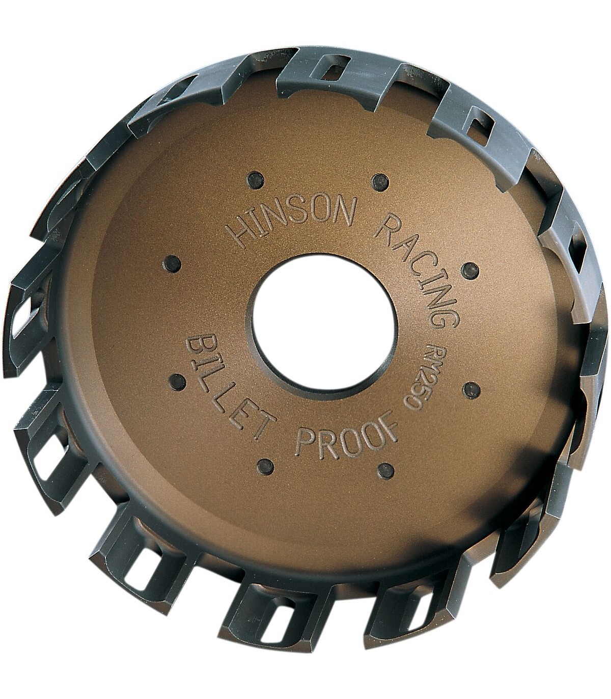 Cloche d'embrayage BilletproofAmélioration des performances et de la durée de vie de l'embrayageTests réalisés par les équipes Honda, Suzuki, Kawasaki, JGR Yamaha et KTMUsinage à partir d'aluminium T6 taillé dans la masse et enduction renforcée pour une résistance à l'usure cinq fois plus élevéeFacilitent l'utilisation de l'embrayage sur la plupart des machinesToutes les cloches d'embrayage sont dotées de vis type à bouton pour permettre une fixation aux clips d'origineFabrication aux États-Unis