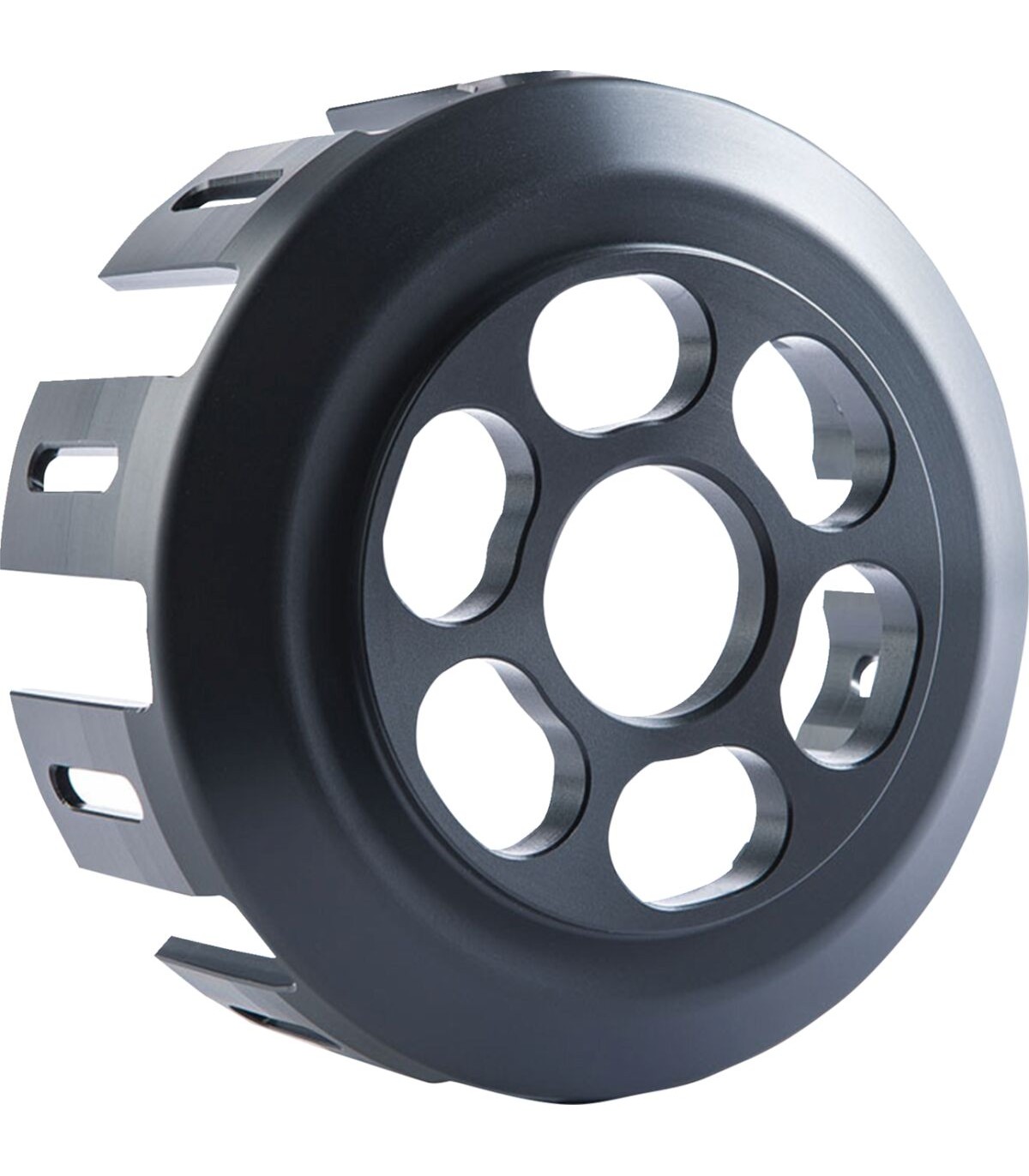 Cloche d'embrayage BilletproofAmélioration des performances et de la durée de vie de l'embrayageTests réalisés par les équipes Honda, Suzuki, Kawasaki, JGR Yamaha et KTMUsinage à partir d'aluminium T6 taillé dans la masse et enduction renforcée pour une résistance à l'usure cinq fois plus élevéeFacilitent l'utilisation de l'embrayage sur la plupart des machinesToutes les cloches d'embrayage sont dotées de vis type à bouton pour permettre une fixation aux clips d'origineFabrication aux États-Unis