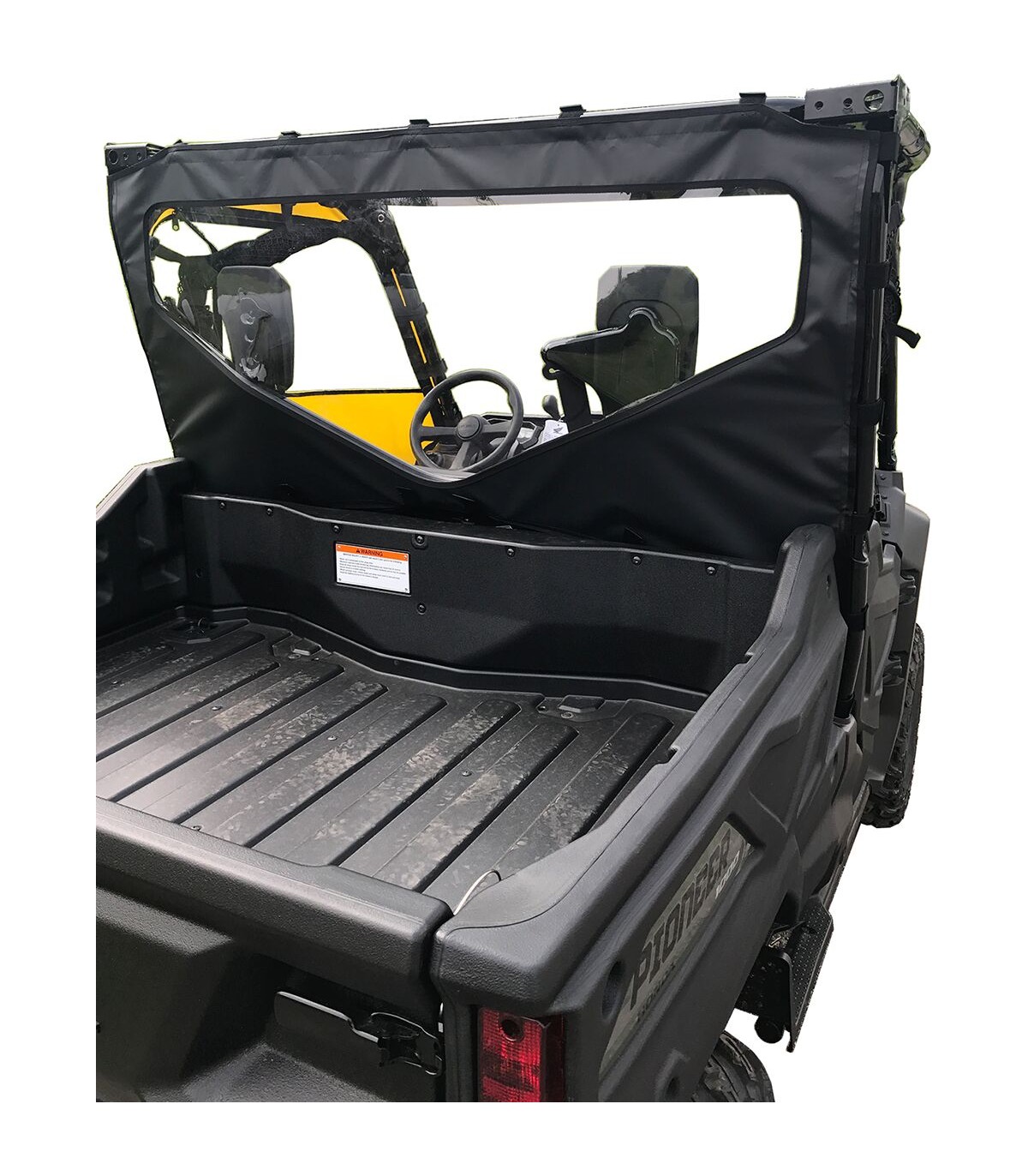 Pare-brise arrière pour SSVLes sangles multiples permettent au panneau anti-poussière de s'adapter à la plupart des toits rigidesGrande vitre en vinyleEn nylon Rip-Stop renforcéInstallation et retrait facile en 10 minutesAjustement parfaitFabrication aux États-Unis.