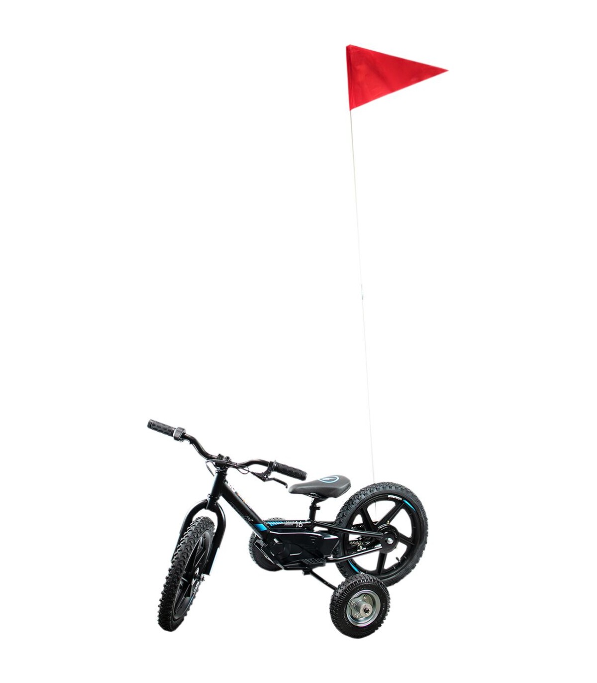 Drapeau de signalisationCompatible avec les motos de 50 cm³ et vélos électriques STACYC™, Raisor et KTMComprend une patte de fixation qui se fixe à la plaque déportéeLa perche en 2 parties est en fibre de verre et mesure 6,35 mm (1/4 pouce) de diamètre.