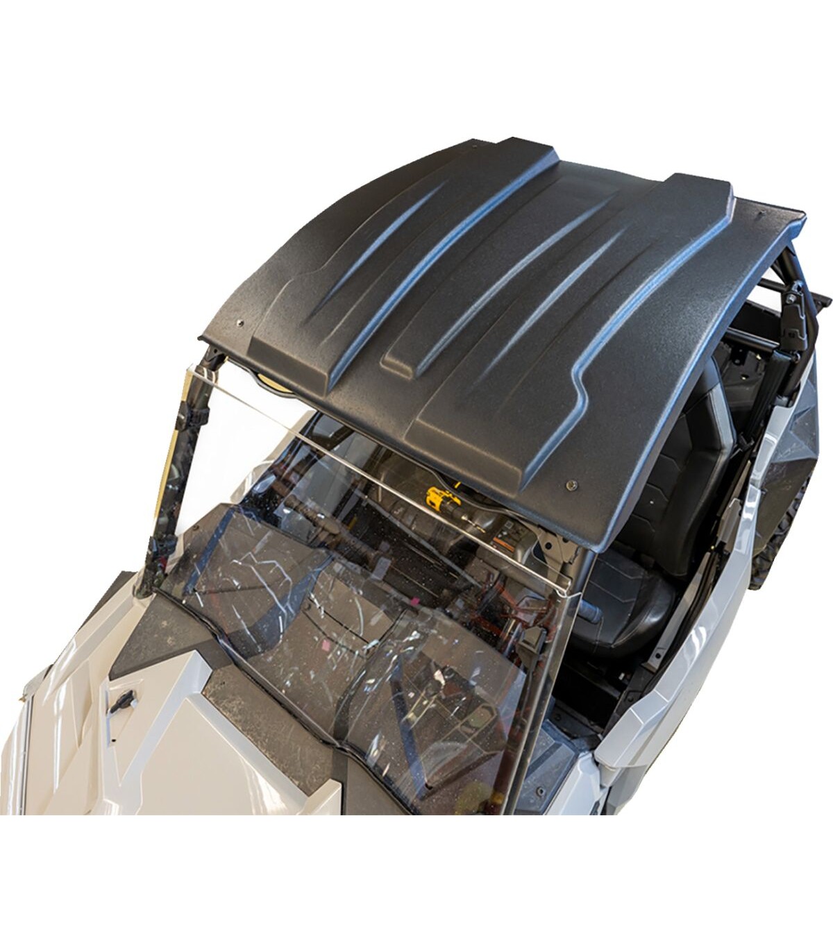 Toit pour SSVPolyéthylène durable avec stabilisateurs UVExtrêmement durable par temps froidNon compatible avec tous les pare-briseÀ retirer lors du remorquageAvec kit de montage completFabrication aux États-Unis.