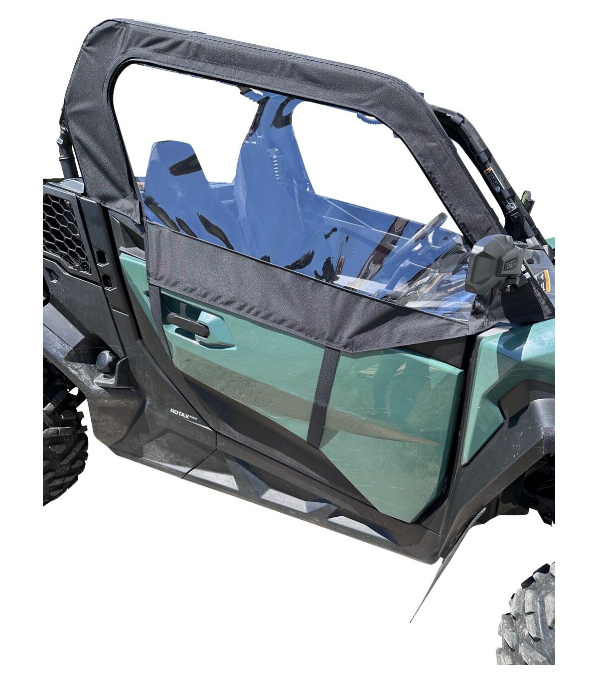 Boîtier latéralCoque en polyester 600 deniersPare-brise latéral en acrylique flexible, transparent et de qualité automobile cousu dans la section supérieure des portesLes portes sont complètement amovibles et sont munies d’une double tirette # 10 sur toute la longueurInstallation simple en utilisant les colliers de serrage sur chaque côté du boîtier, qui se fixent aux arceaux pour un verrouillage étanche et solideKit complet, comprenant les attaches Velcro nécessaires, utilisées sur le haut des portes, ainsi que les instructions d’installation et d’entretien.Il est possible de retirer entièrement les portes pour plus d’aération lors des journées plus chaudesFabrication aux États-Unis