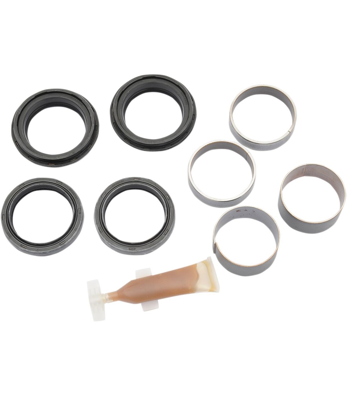 Kit de dépannage de fourcheRenferme tout le nécessaire pour reconditionner un jeu de fourchesChaque kit comporte deux joints spy, deux joints anti-poussière, deux pistons métalliques et deux boisseaux métalliques.Commander un kit par moto