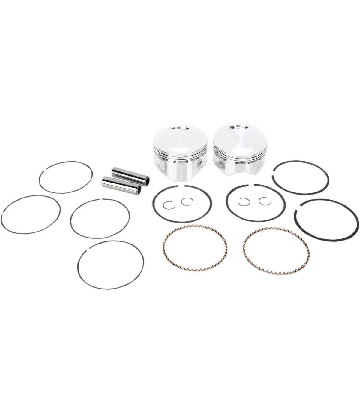 Piston Kit for S&S MotorsPiston kit includes forged pistons (unless noted) rings, wrist pins and clips for a complete motor replacementMade in the U.S.A1.200" deck height.