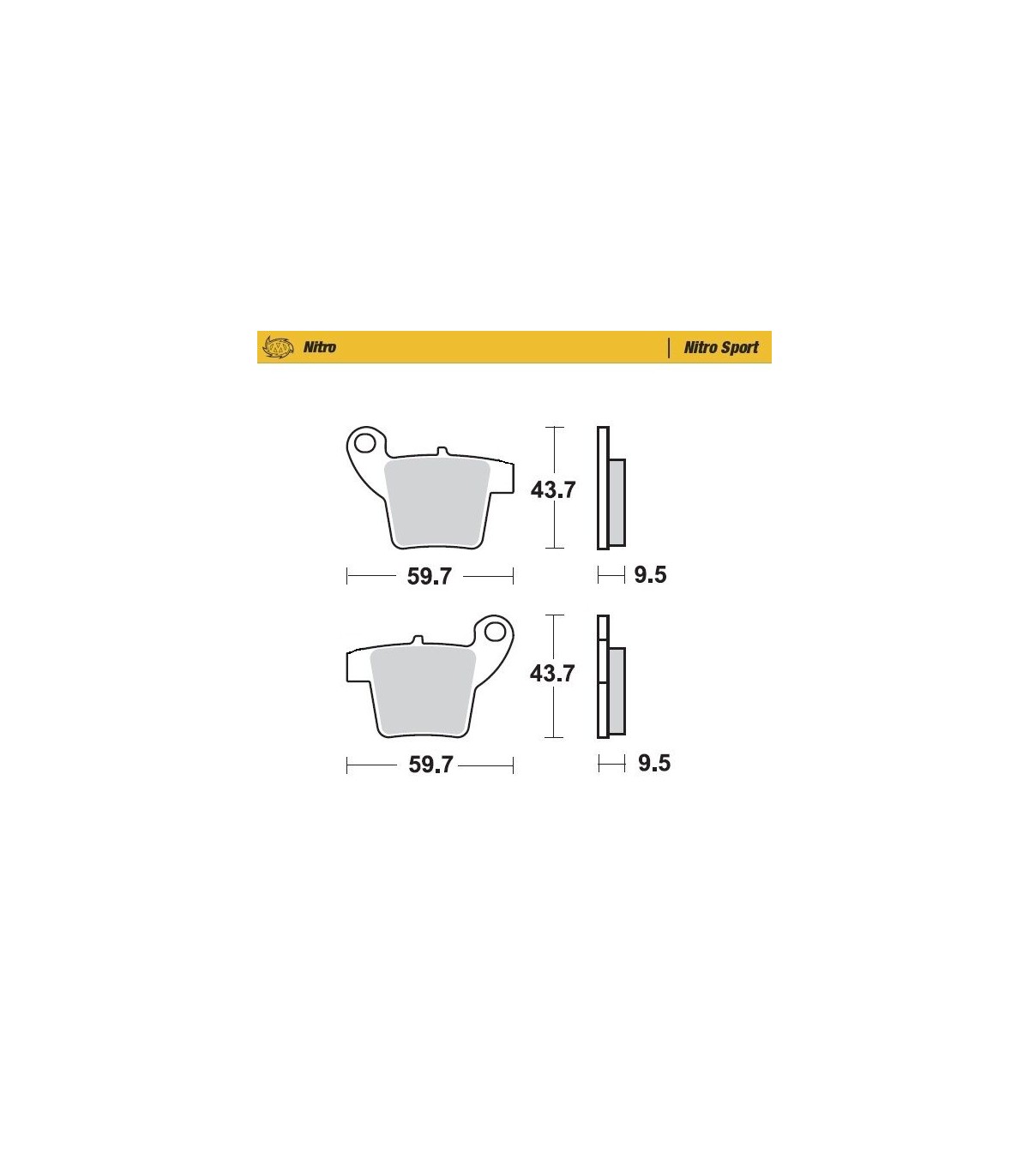 Plaquettes de frein Nitro SportPlaquette de frein frittée MX/Enduro pour une utilisation généraleUn composé plus souple à un seul gradient ajoute plus de puissance de freinage et optimise davantage le retour d'information du pilote