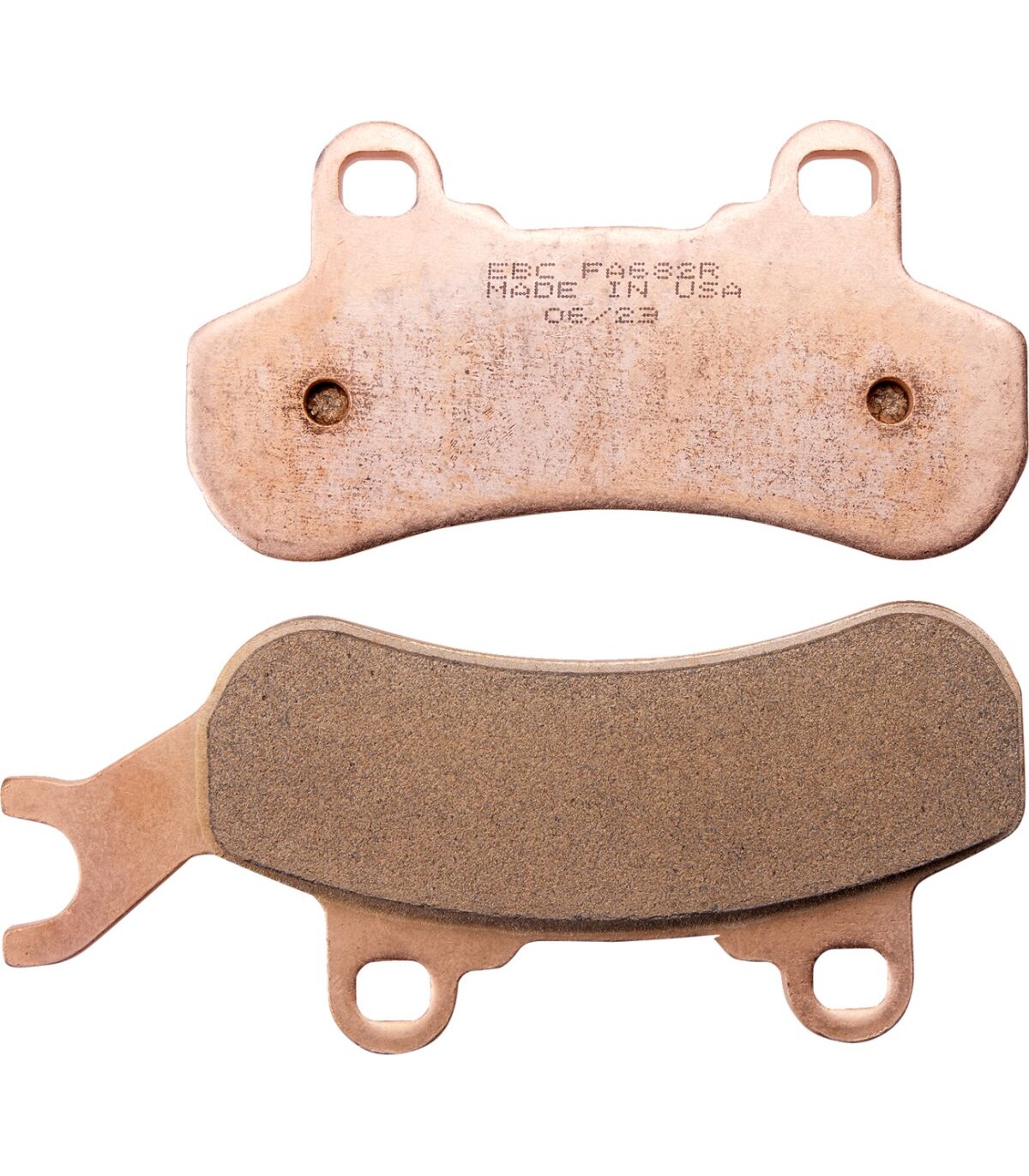Plaquettes de frein frittées « R » à longue durée de vieLes plaquettes de frein idéales pour un usage de loisirOffrent une durabilité maximale et une performance de freinage excellenteEn bronze fritté fabriqué aux États-Unis pour une longévité maximaleParticulièrement adaptées pour une conduite dans l'eau, la boue, la poussière ou le sable