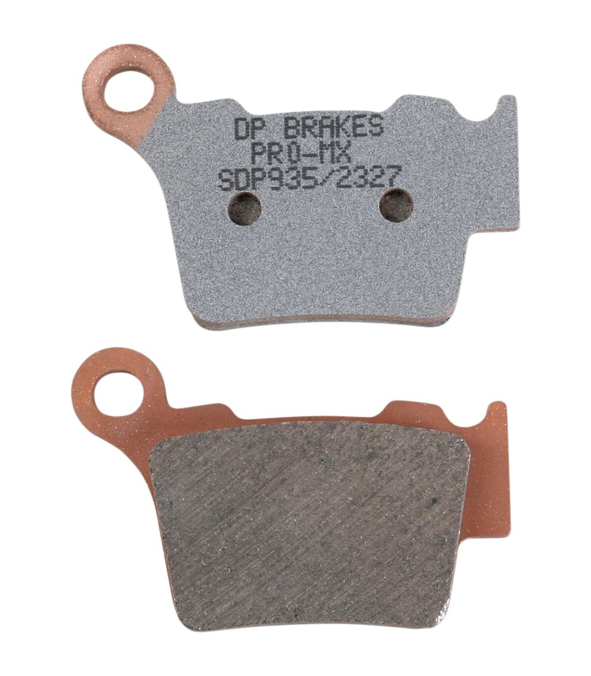 Plaquettes de frein frittées SDP Pro-MXOffrez à votre moto d'excellentes performances de freinage grâce aux plaquettes de frein DP BrakesLes plaquettes ont une courte période de rodage qui vous permet de bénéficier rapidement d'une performance de freinage maximaleLe design et les matériaux DP Brakes garantissent un freinage intensif et une performance régulièreLes plaquettes ont une longue durée de vie. Les composants en métal fritté sont plus résistants que les plaquettes conventionnelles organiques ou en aramidePlaquettes en métal fritté éprouvé de DP BrakesLes matériaux en céramique à base d'oxyde d'aluminium gris sur le dos de la plaquette protègent le piston d'étrier et le liquide de la chaleur dans les conditions extrêmes pour des performances constantesExcellente force de freinage initiale et sensation dans des conditions humides et sèchesCoefficient de friction GG