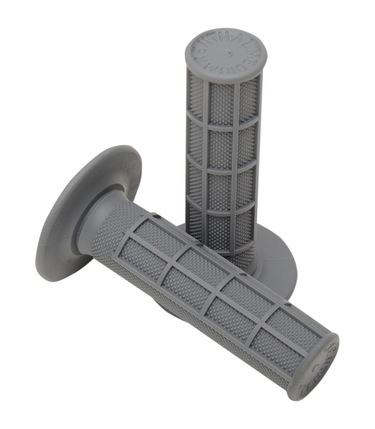 Poignées semi-gaufréesDesign gaufré au niveau des doigts pour plus de traction, et souple sous la paume pour réduire les ampoulesPour guidons de 7/8" ; 4-1/2" de long