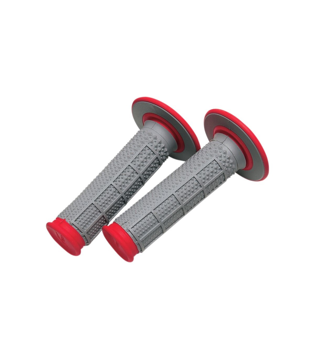 Poignées à double composé gros diamètreToutes les avantages des poignées à double composé classiques mais avec un diamètre de pouce surdimensionné, qui diminue et atteint la taille standard au niveau de l’extrémité, afin d’épouser les formes d'un poing fermé, pour un maximum de confort et de cQuantité de matière plus importante au niveau des zones sensibles du pouce, pour mieux absorber et amortir les vibrations, sans limiter le contrôleComposant souple utilisé pour le diamètre extérieur de la poignée, qui est en contact direct avec la paume, les doigts et le pouceComposé ferme utilisé pour la bride, la paroi interne et l’extrémité extérieure de la poignée, pour un maximum de robustesseLa combinaison ultime entre le confort et la durabilitéPour usage avec un tube d'accélérateur