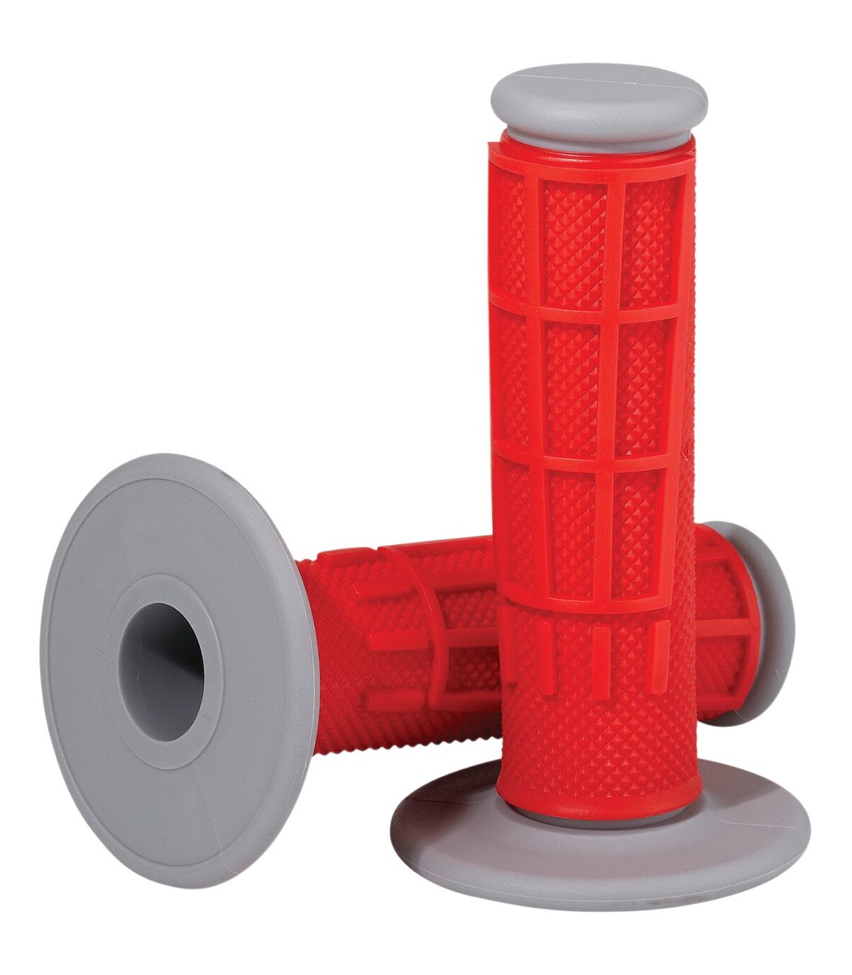 Poignées semi-gaufrées Comp DiamondPoignées à double composéComposé ferme utilisé pour la bride interne et externe, pour plus de robustesseComposé doux pour la paume et les doigts pour ajouter de l’accroche et du confort pendant la conduiteLe motif semi-gaufré assure une adhérence supplémentaire et la base de la poignée a des motifs diamants pour apporter de la traction en présence d’humidité et de boueLa forme conique du motif semi-gaufré confère à la poignée un design plus finConçu pour une utilisation sur guidons de moto avec barre de 7/8’’ de diamètre et accélérateur rotatif avec tube d'accélérateur